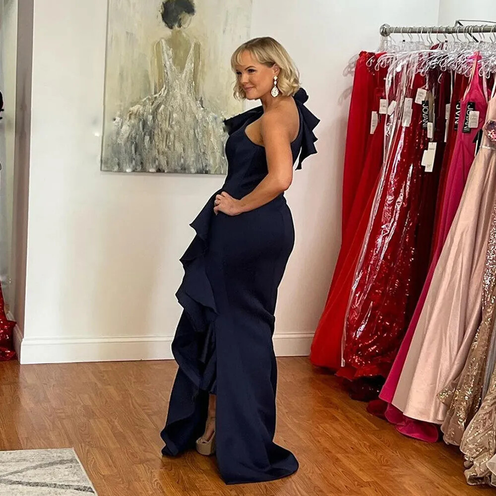 как выглядит Dark Blue Mother of The Bride Dresses One Shoulder Side Split Formal GownRuffles фото