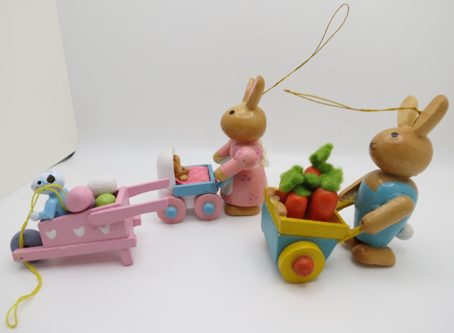 Set of 3 Handcrafted Wooden Easter Bunny Hanging Ornaments