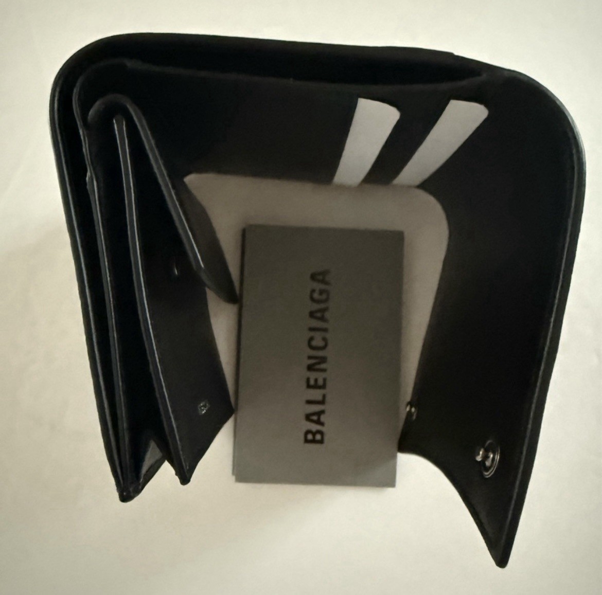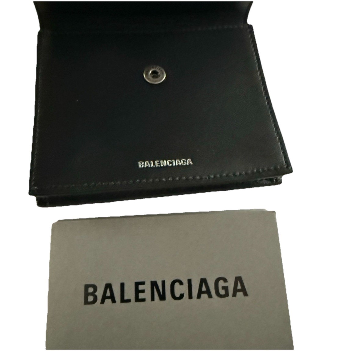 как выглядит Balenciaga Black Leather Tri-Fold Wallet With Coin Pocket NEW AUTHENTIC фото