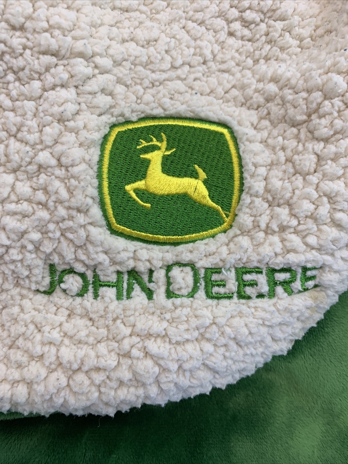 John Deere Infant Car Seat Canopy Cover Baby Green Fleece Sheep Skin Embroidery