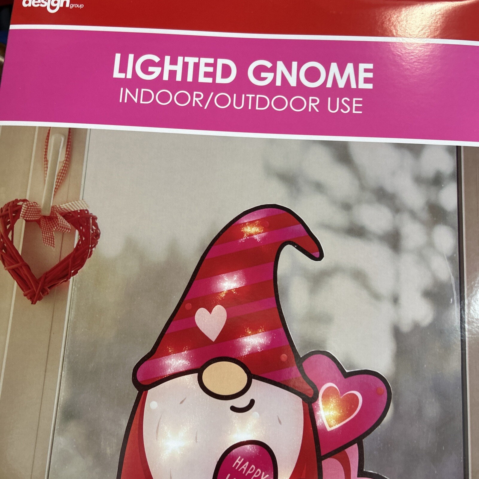 как выглядит NEW Lighted Happy Valentines Day Heart Gnome Window Decoration Indoor Outdoor фото