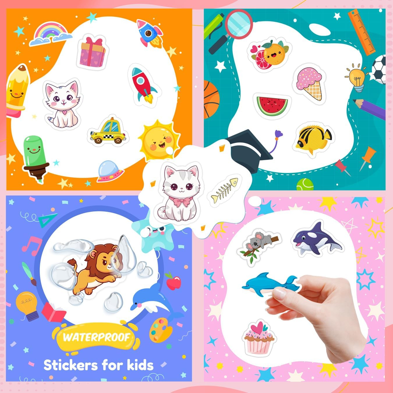 36 Sheets 800 Vinyl Stickers for Kids Scrapbooking Animals Dinosaurs Fruits Car