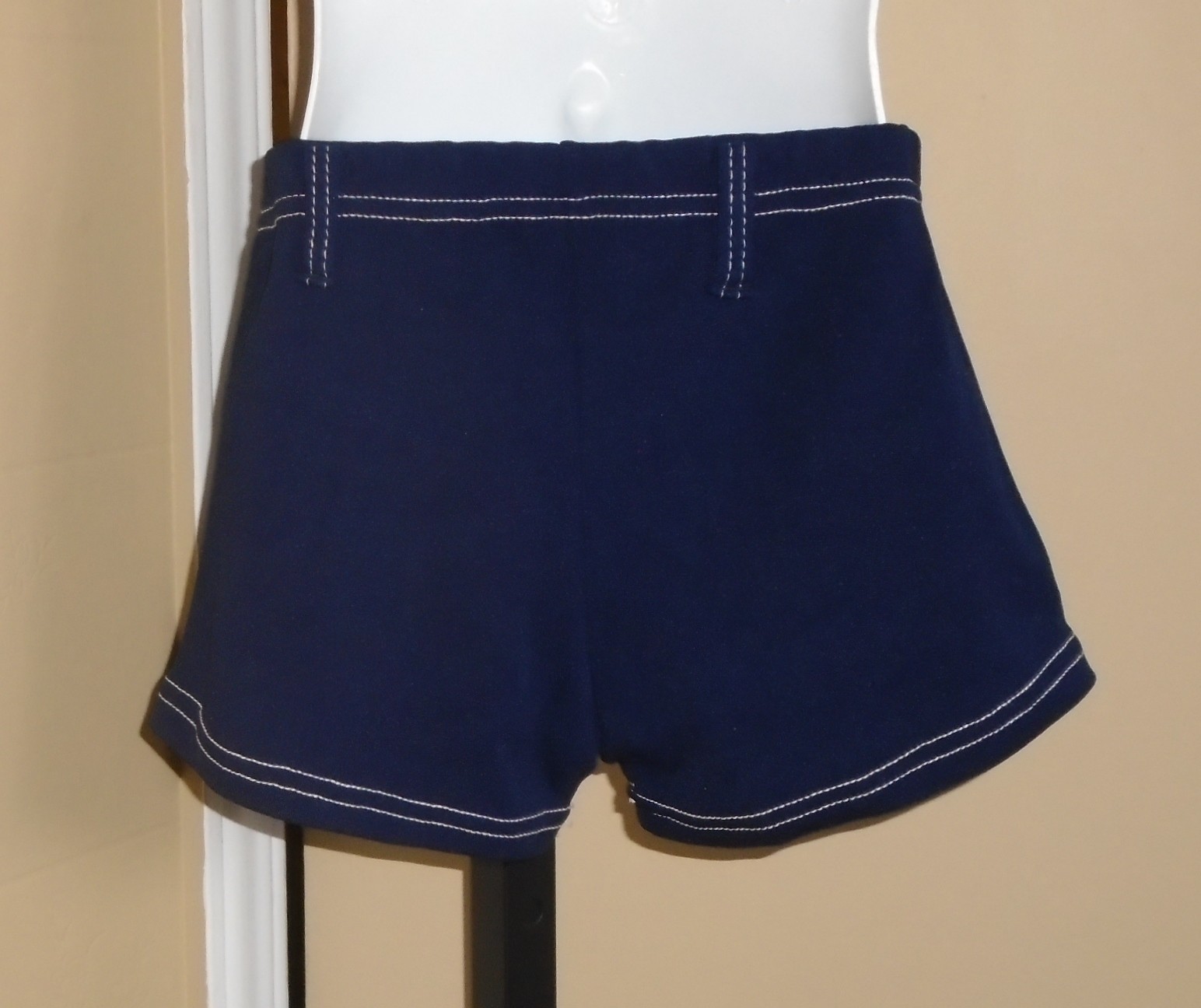 как выглядит Girls VTG 1970s Navy Blue Nylon Shorts Faux Pockets Fly Belt Loops Sz 12 NOS фото
