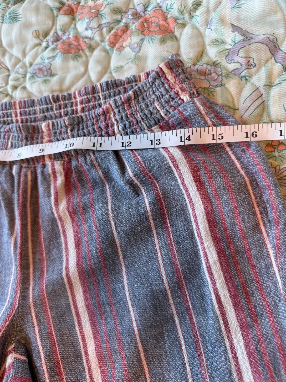 как выглядит Vintage Style Pink Rose Linen /cotton Striped Capri Size M Multi-color фото