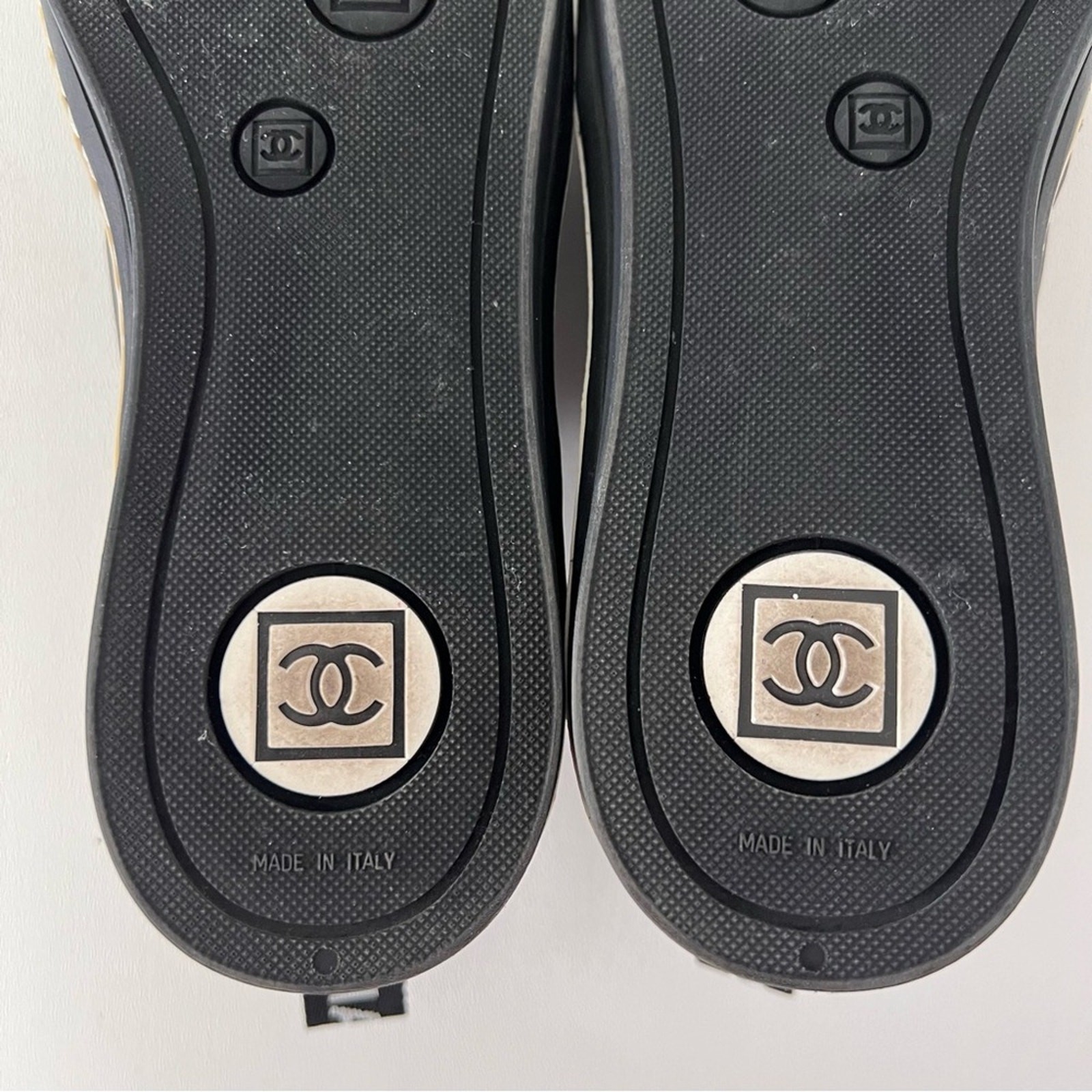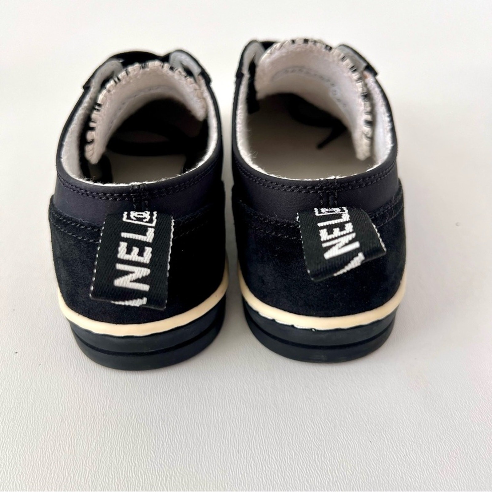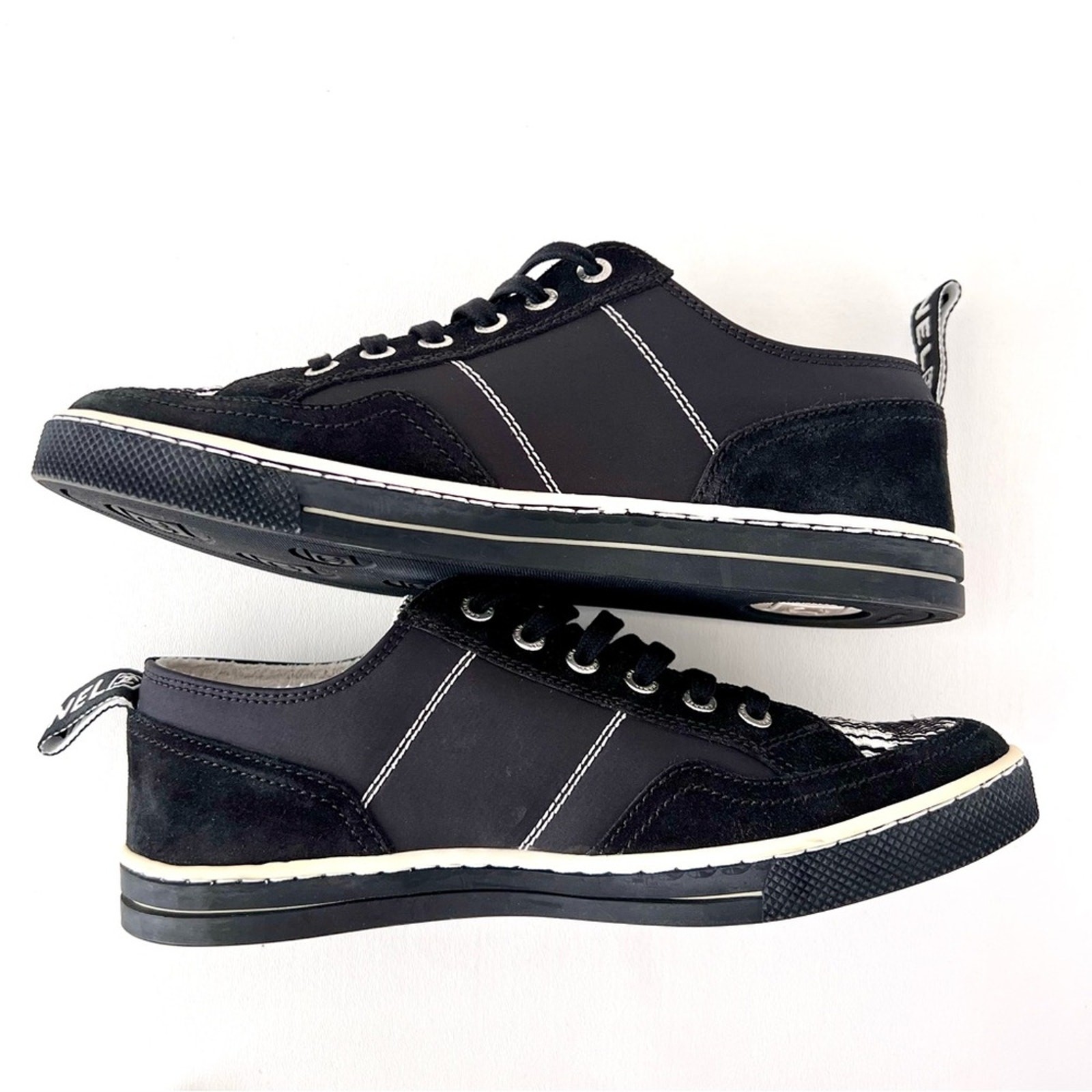 как выглядит CHANEL Black White Low Top Tennis Sneakers CC Logo Tweed Suede Vintage EU 37 фото