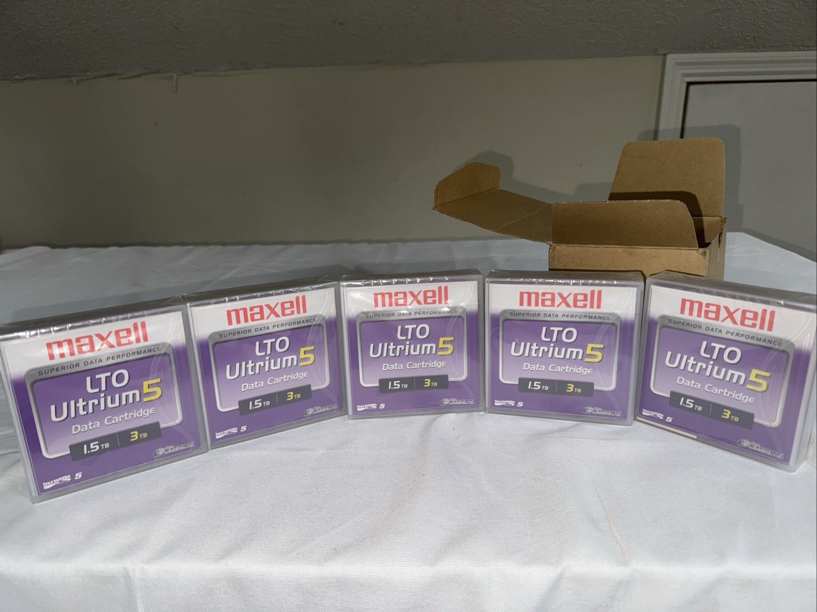 Lot of 5 Maxell LTO Ultrium 5 Data Cartridges 1.5TB / 3TB New Sealed