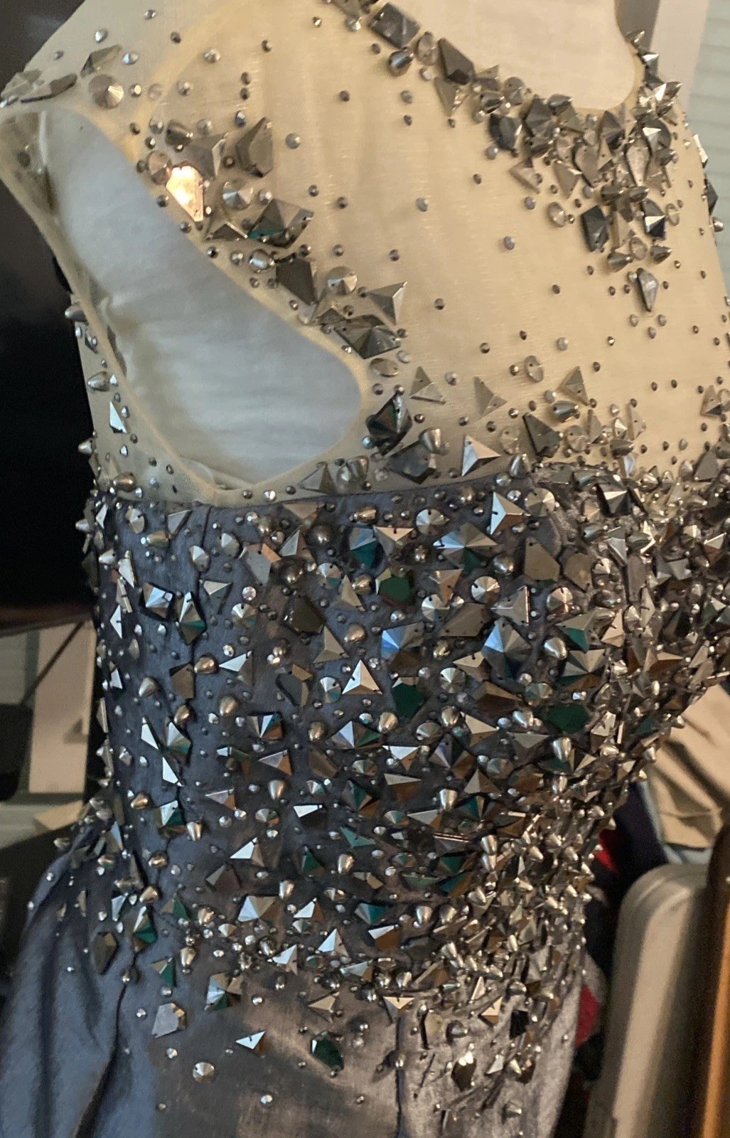 Cassandra Stone By Mac Duggal Sz 10 Gun Metal Embellished Formal Evening Gown