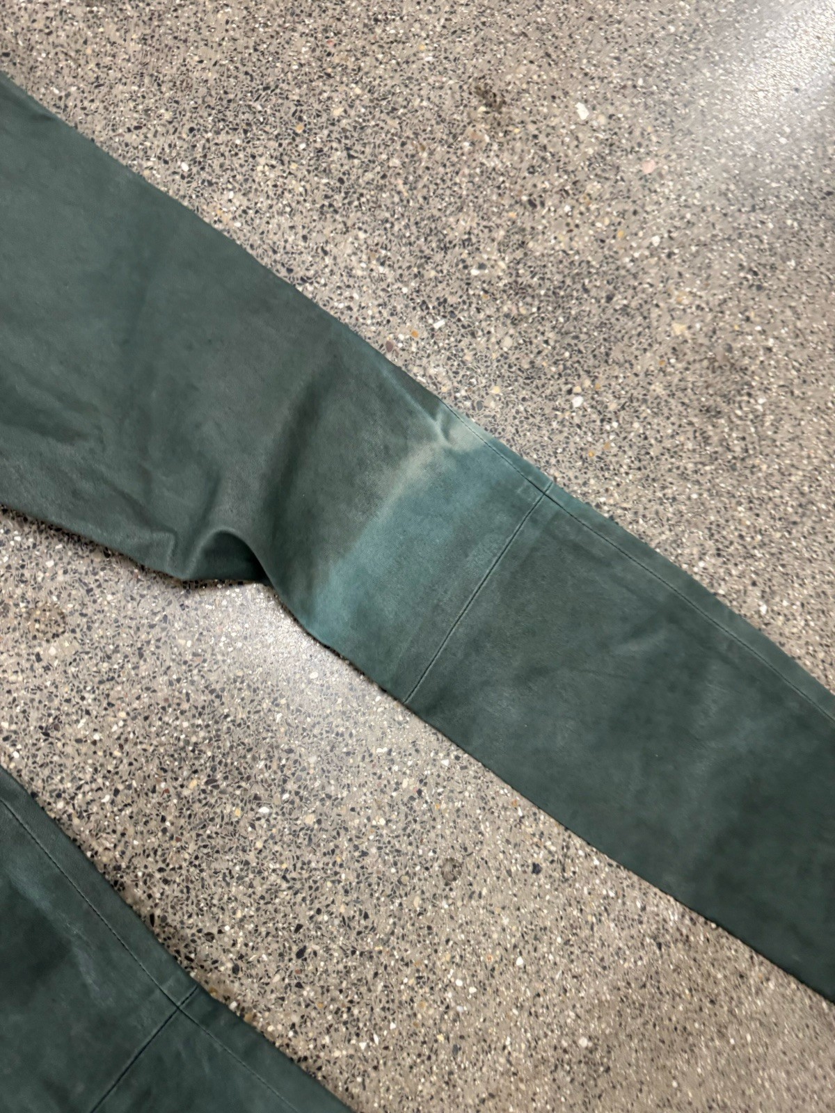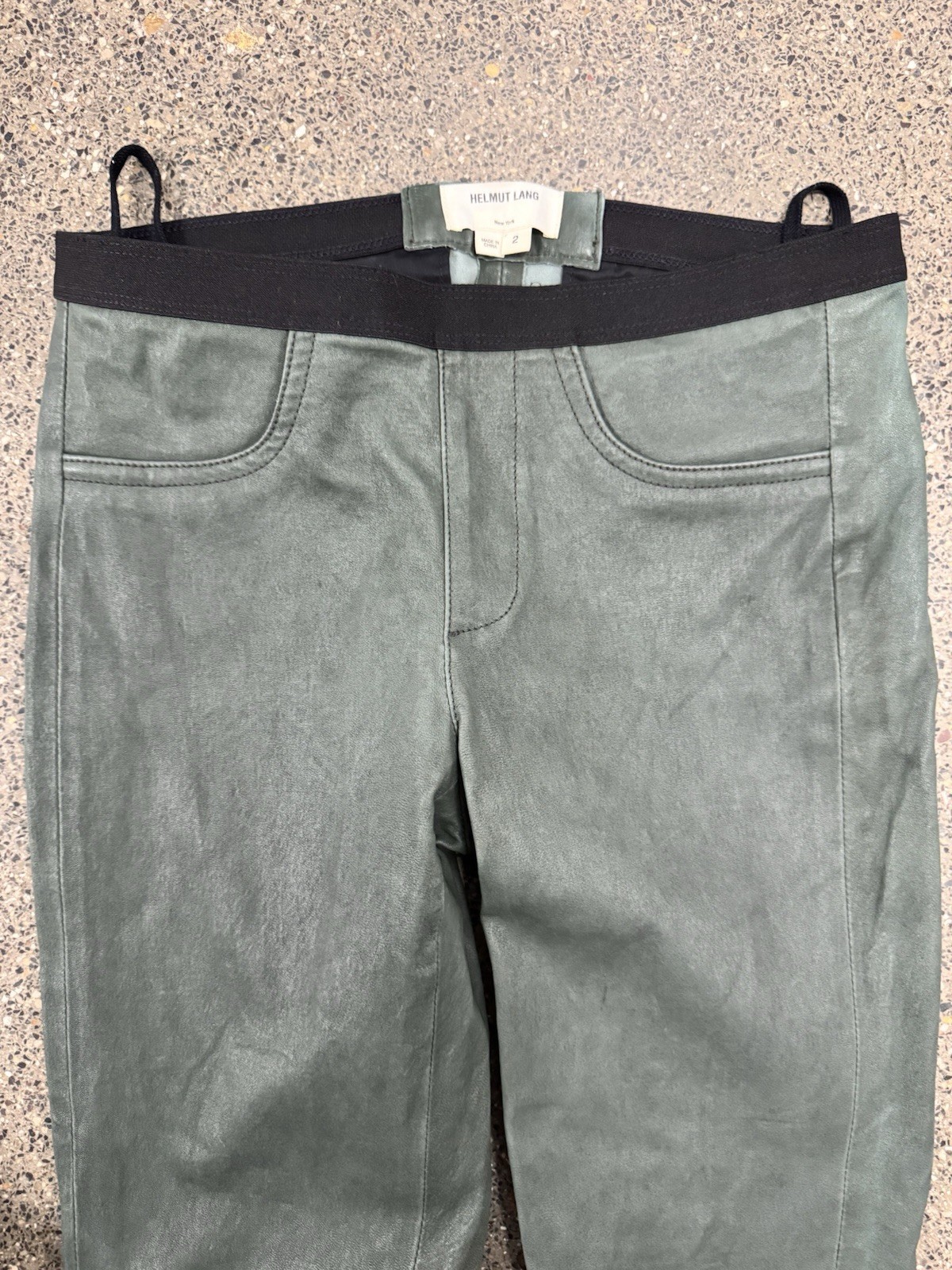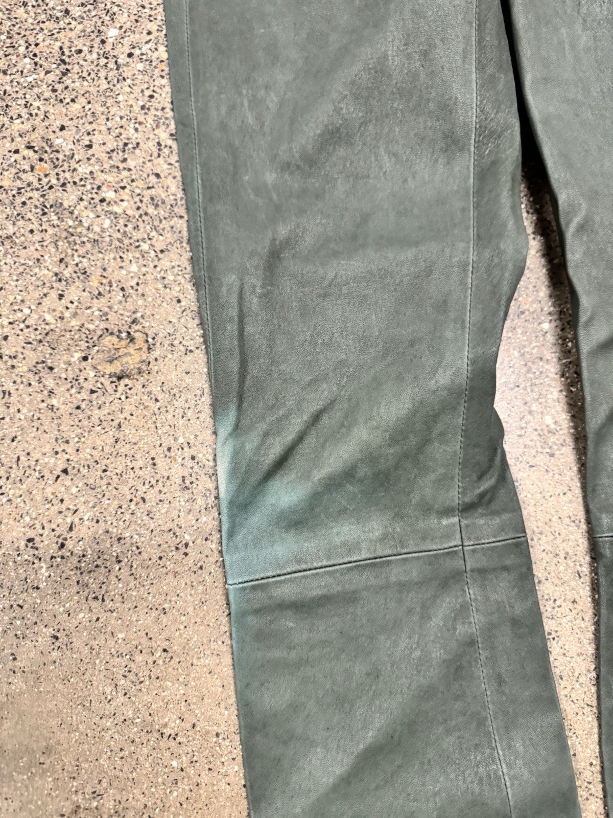 Helmut Lang Women Leggings SZ 2 Lamb Leather Khaki Green Stretch Leather