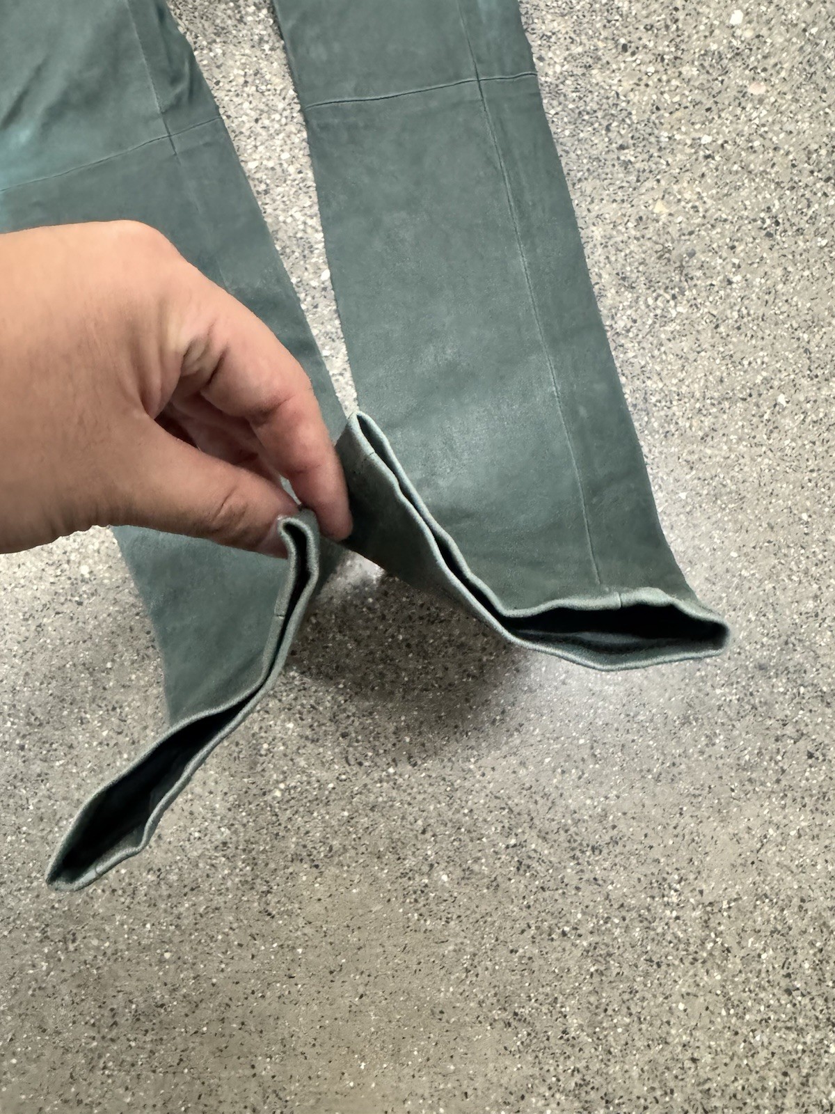 как выглядит Helmut Lang Women Leggings SZ 2 Lamb Leather Khaki Green Stretch Leather фото