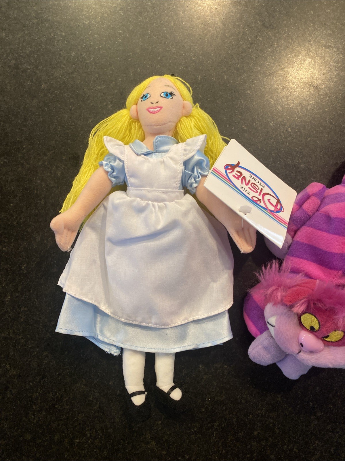 как выглядит 2 Disney Alice in Wonderland bean bag plush 8" Alice doll Cheshire Cat NWT фото