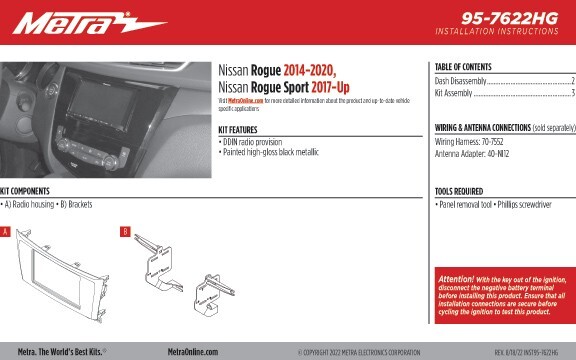 95-7622HG Car Stereo Double-Din Radio Install Kit Wires for 2014-2017 Rogue