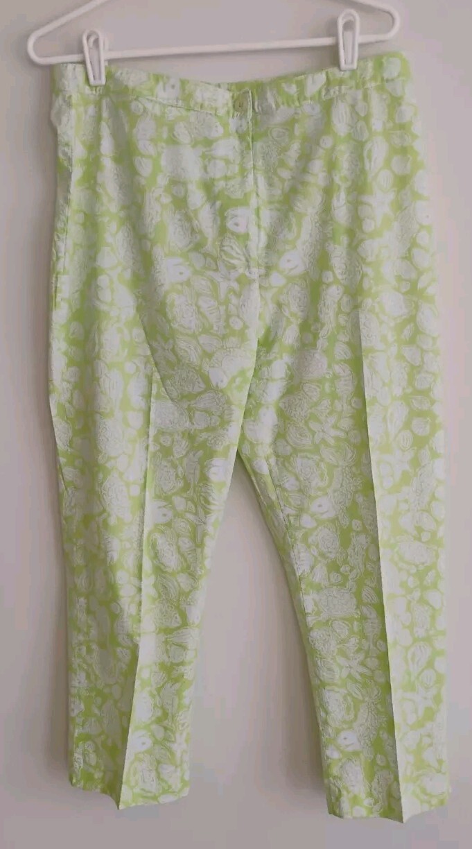 как выглядит Vintage White Label Lilly Pulitzer Floral Happy Fish Crop Pant Preppy SZ 12 фото