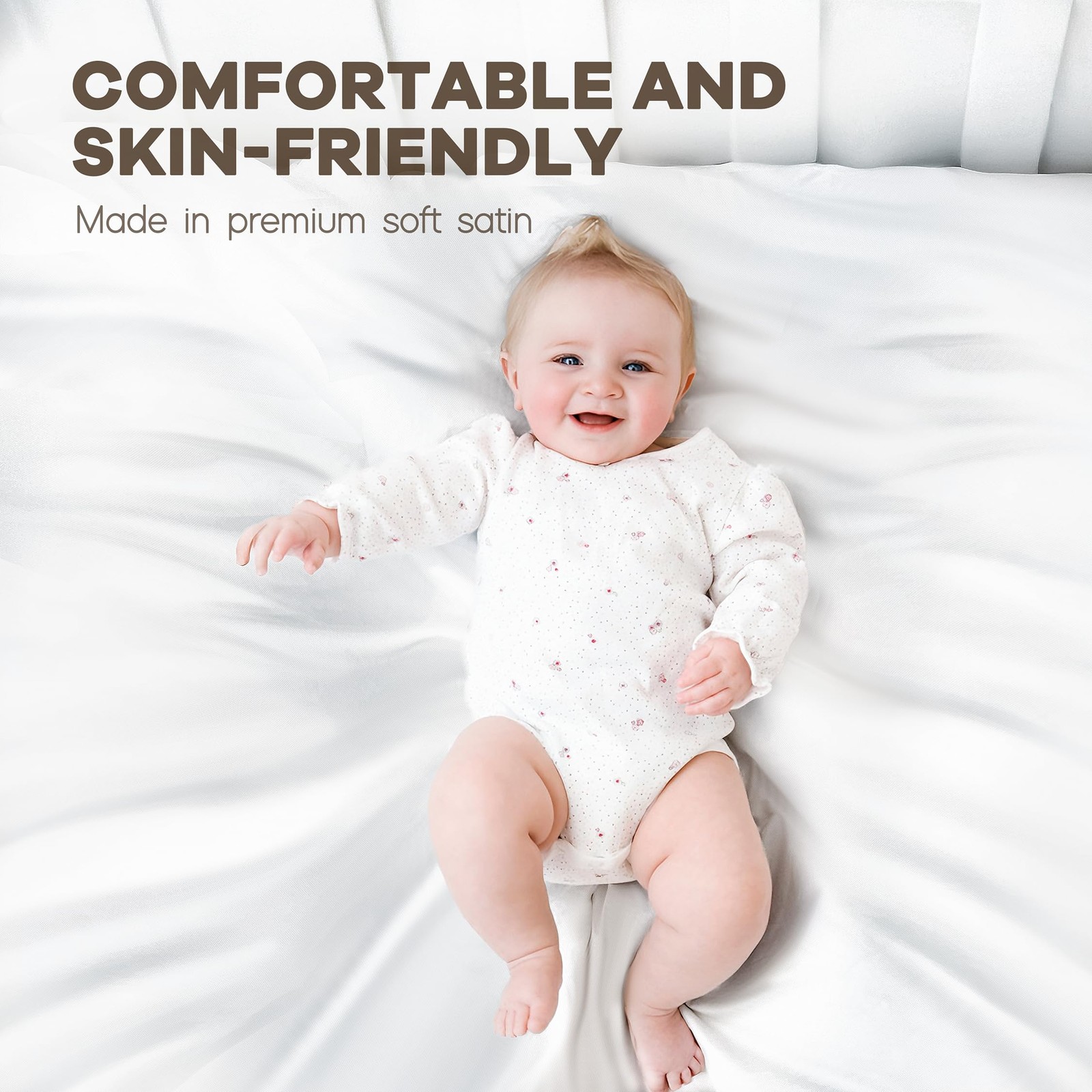 Satin Soft Crib Sheets 2 Pack for Sensitive Hair - White Gray Fitted 52x28