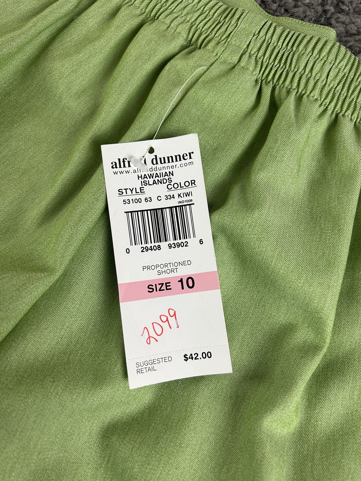 Alfred Dunner Pants Womens 10 Green Kiwi Proportioned Short Straight Leg NWT
