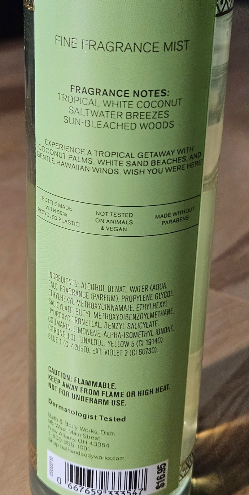 как выглядит Bath Body Works WAIKIKI BEACH COCONUT Fine Body Mist Spray 8Oz/236ml H3-2 фото