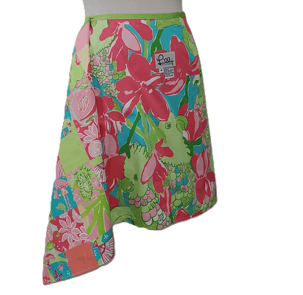 LILLY PULITZER Skirt 4 Reversible Wrap Patch Iris Bird Flamingo Tiger Tropical