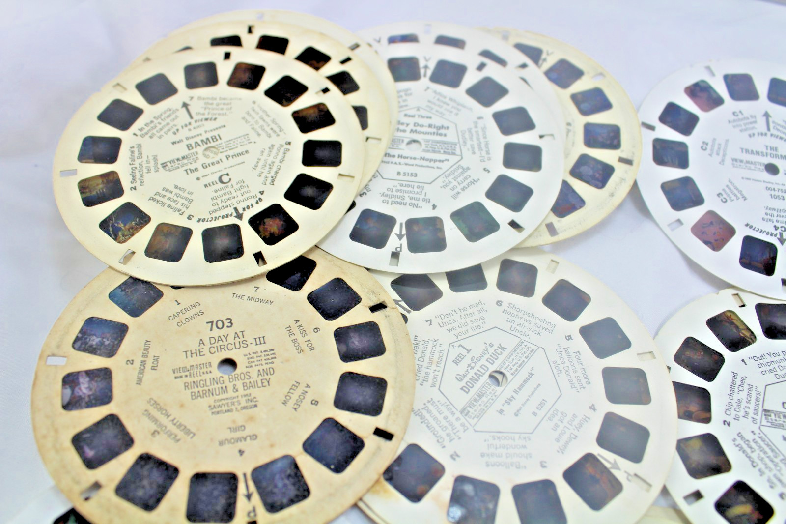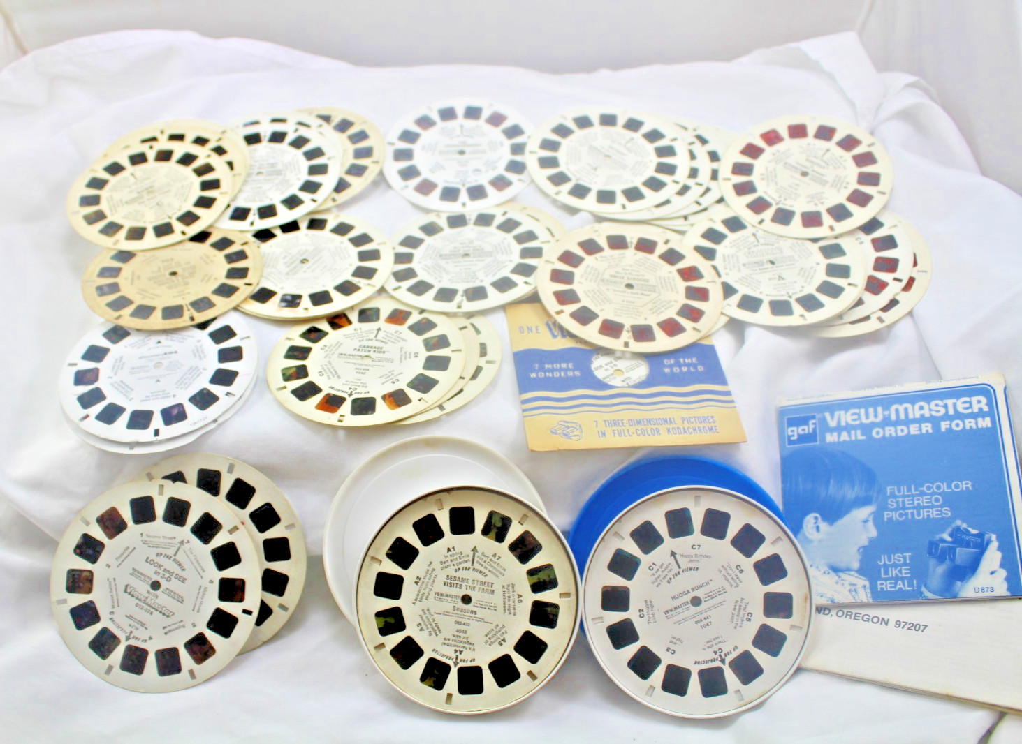 Vintage Lot 48 Assorted View-Master Reels Sesame Street, Batman More w/ Case