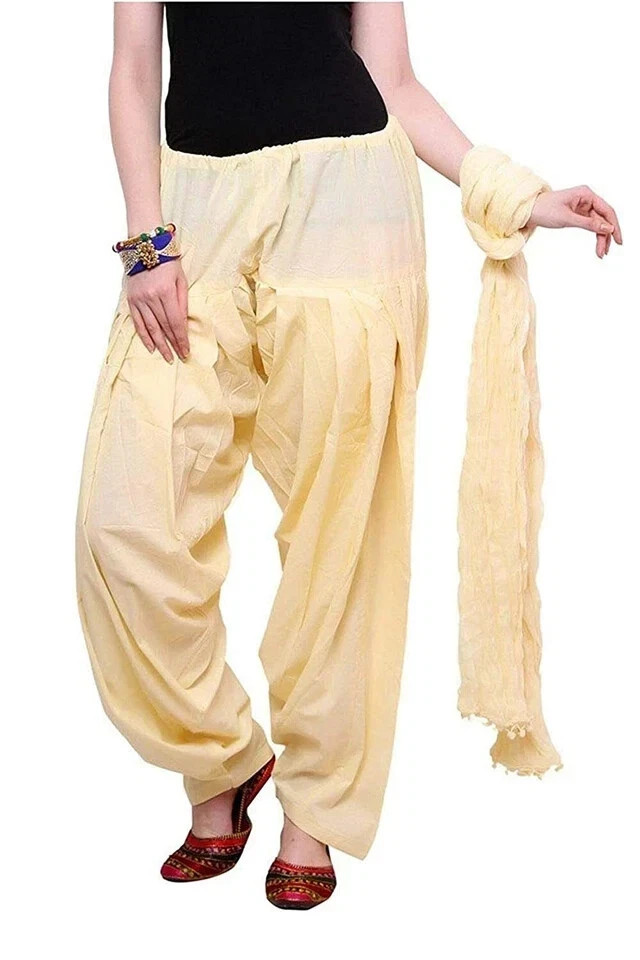 Cotton Salwar Traditional Patiala Salwar Free Size with Chiffon Dupatta Cream
