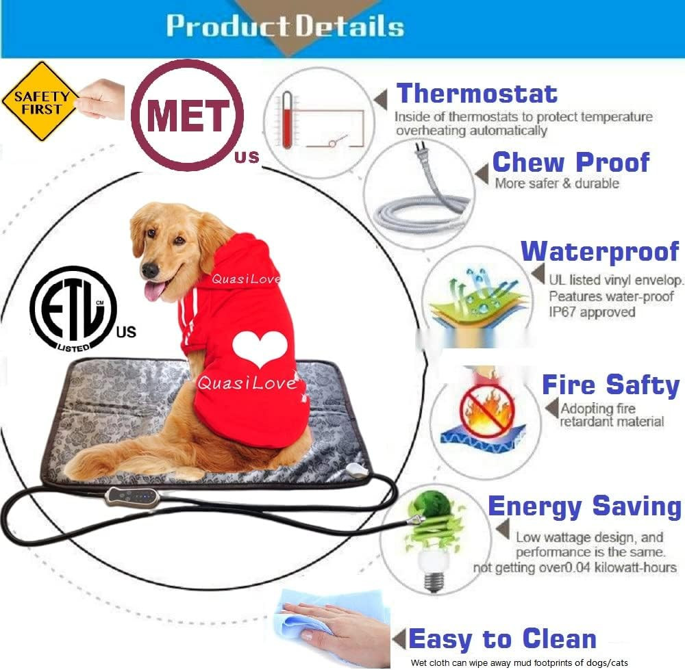 Heated Dog Bed XL Dog Heating Pad Outdoor Indoor House,Continuous High Low Hea