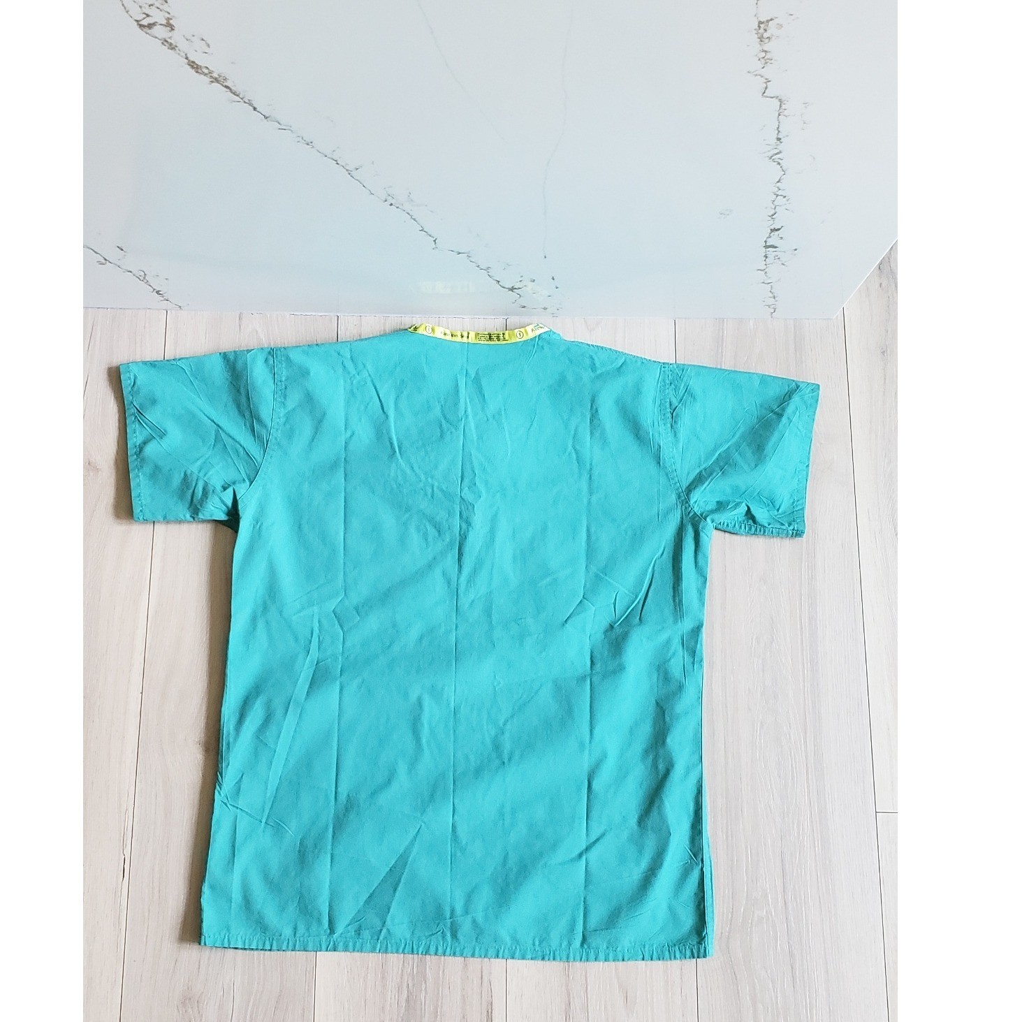 как выглядит Fashion Blend Scrub Top Womens Small Blue Short Sleeve V Neck Workwear фото