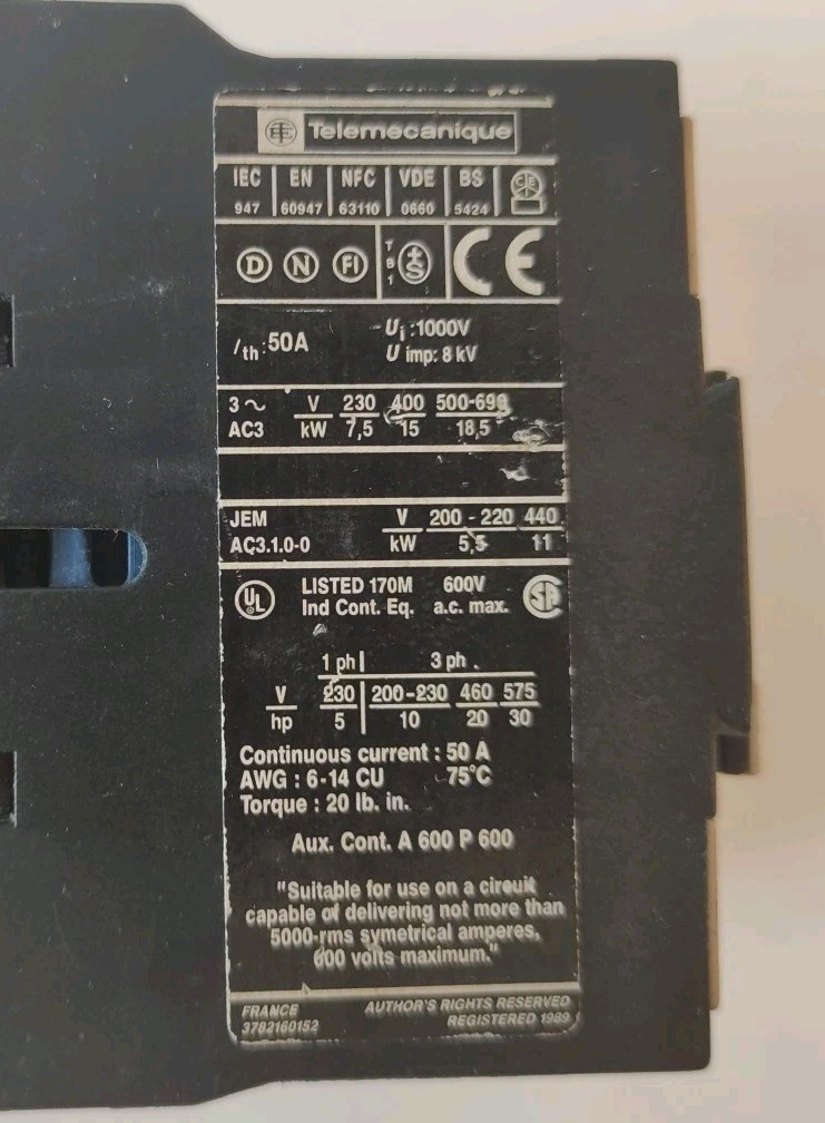 как выглядит Telemecanique LC1 D32 10 Contactor with 110V. Coil фото