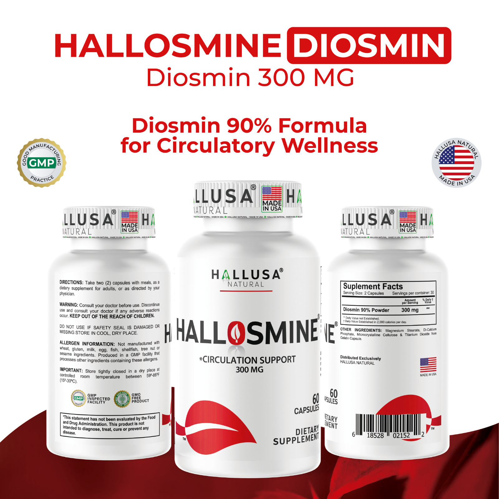 Hallusa Natural Hallosmine 300 mg Diosmin 180 capsules FREE Leg Cream 4 oz