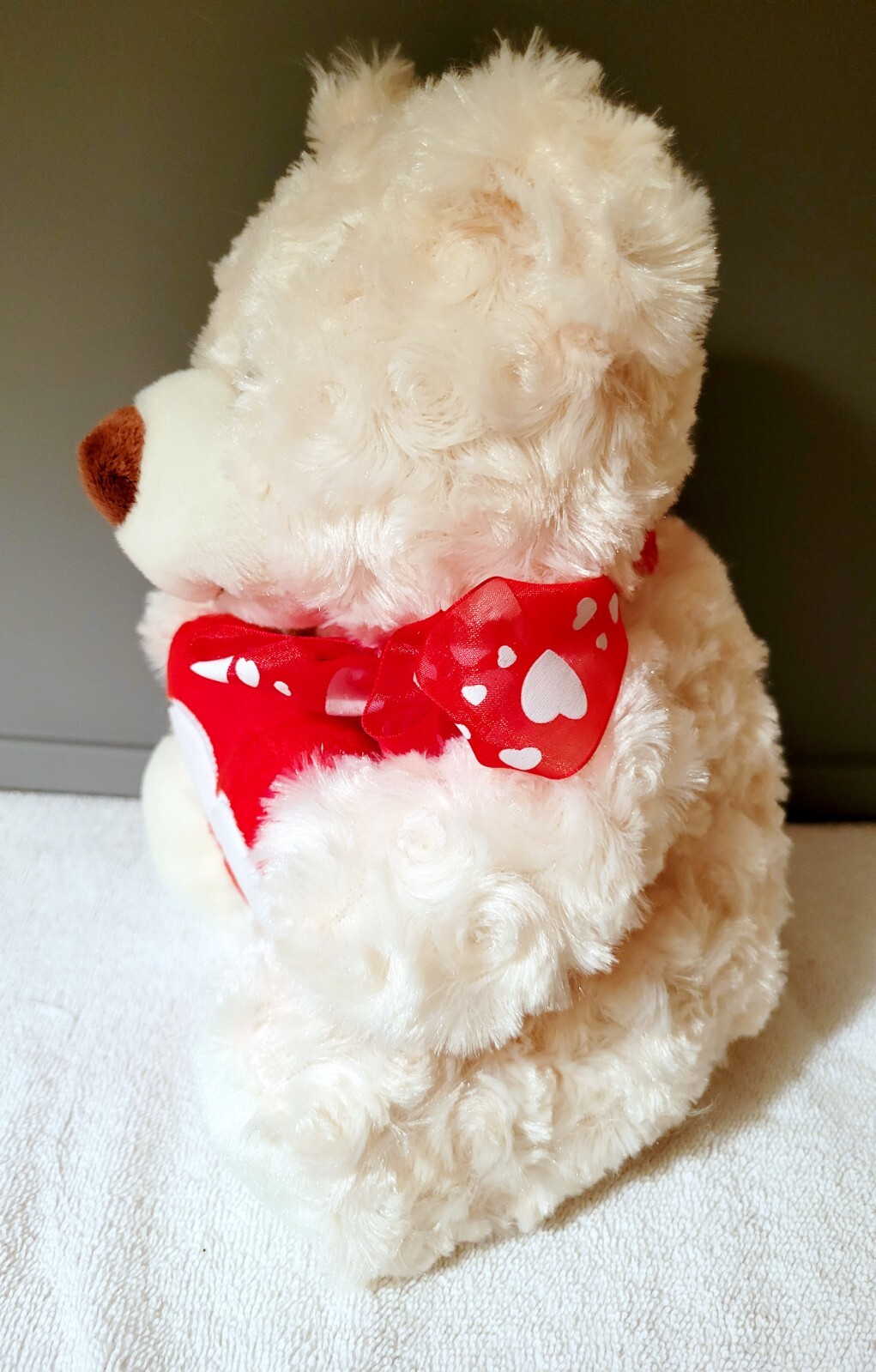 Teddy Bear Plush Anico International White Plush Heart Love Soft Curly Hair 10
