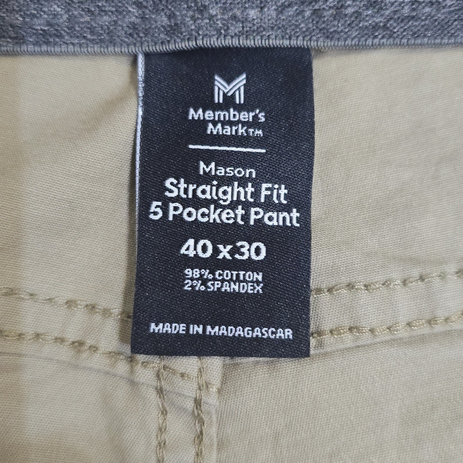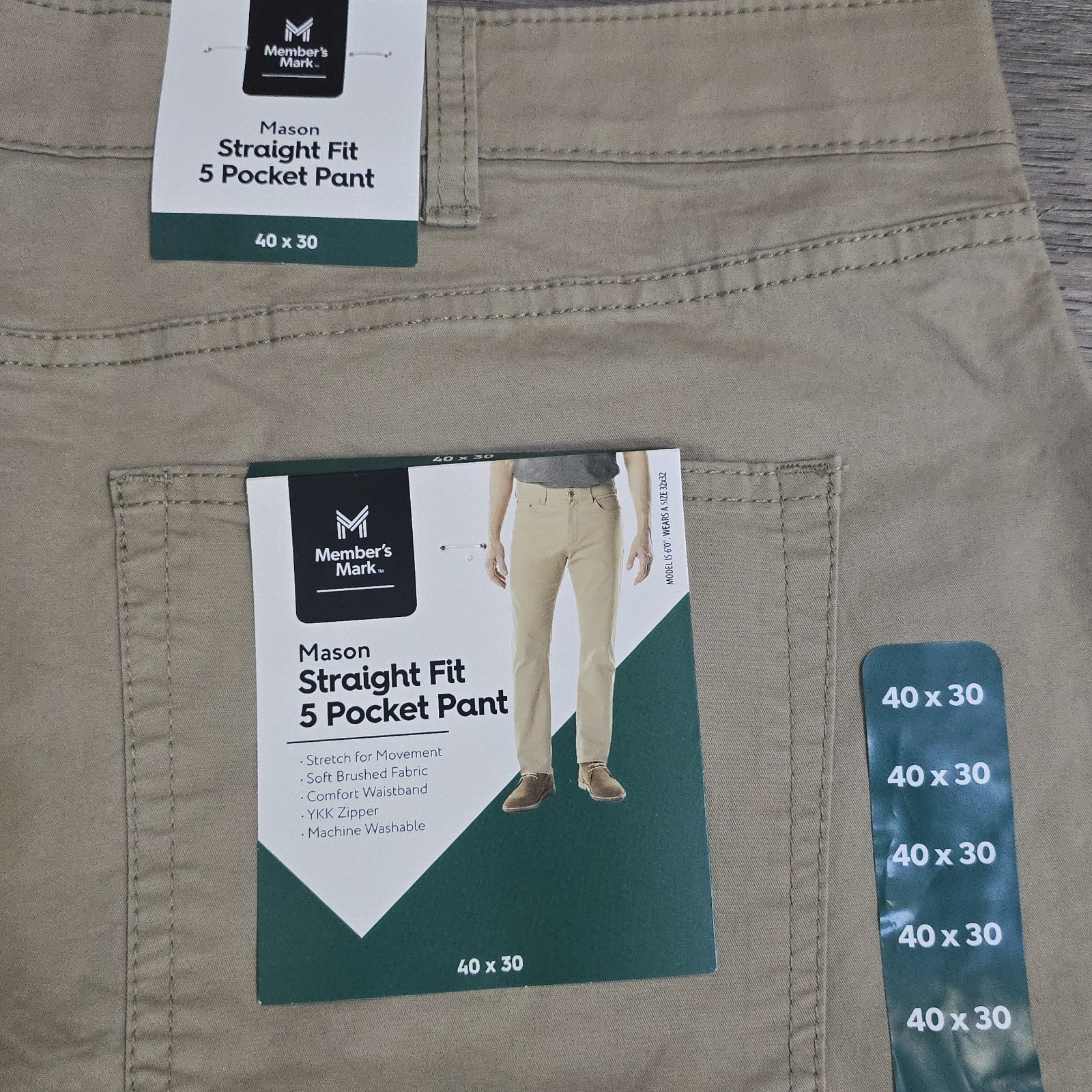Member's Mark Men's Straight Fit Mason 5 Pocket Stretch Pant Size 40x30 Khaki