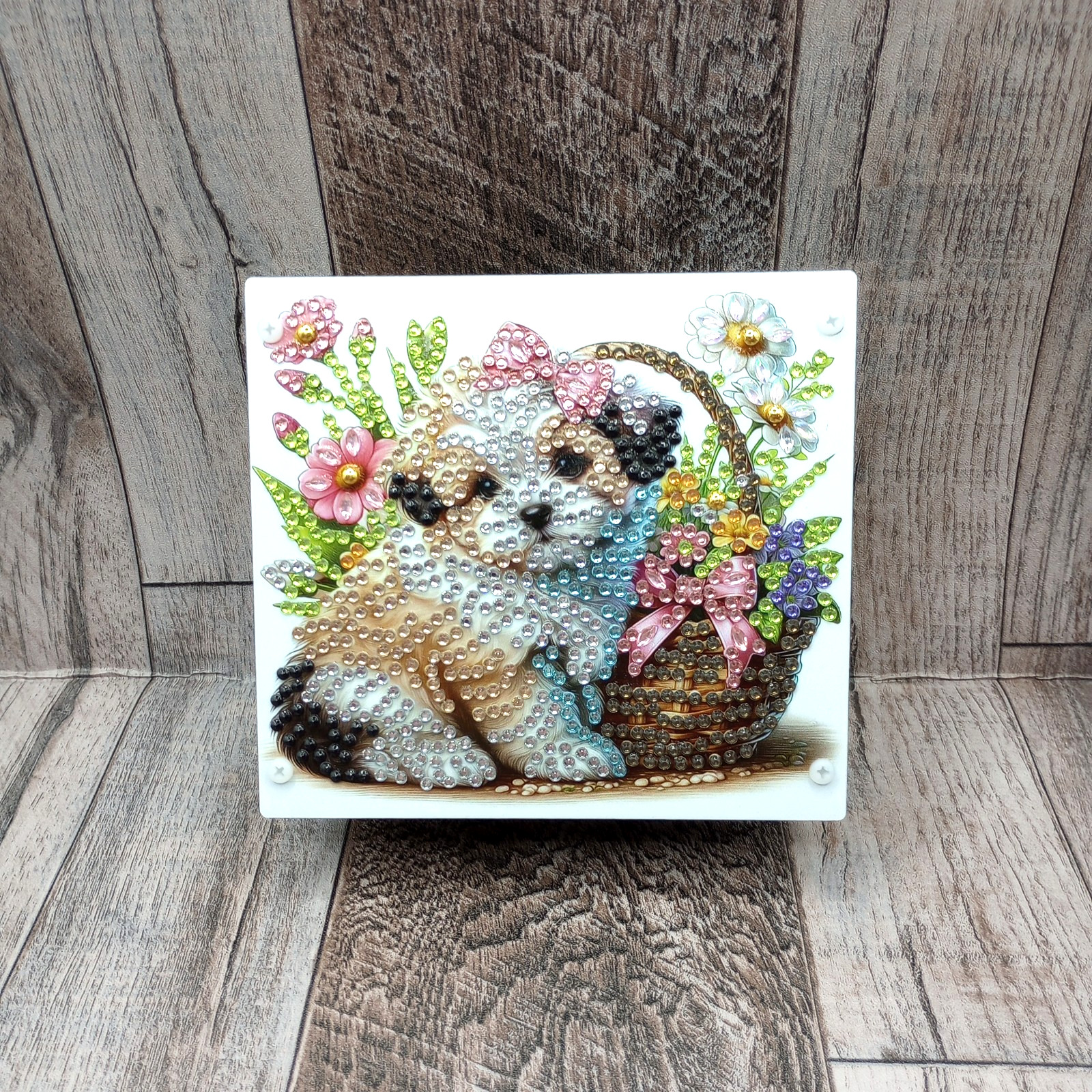 Finished Diamond Art - Pen/Pencil Acrylic Holder w/Puppy Design on both sides