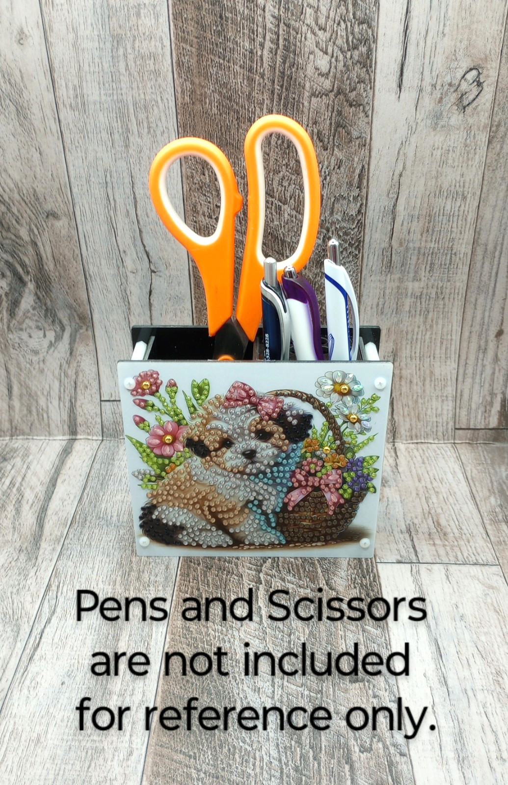 как выглядит Finished Diamond Art - Pen/Pencil Acrylic Holder w/Puppy Design on both sides фото
