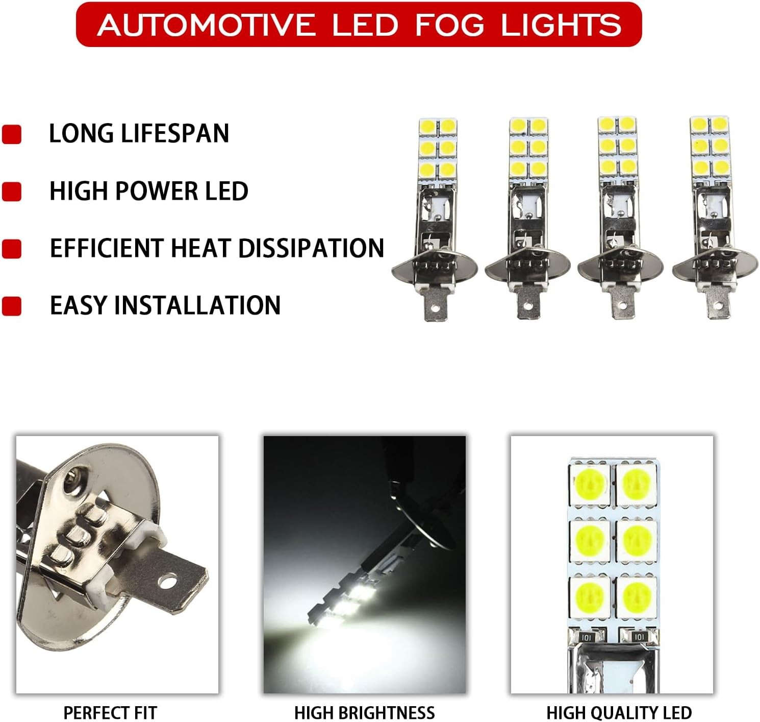 4PCS Car LED Fog Light Headlight Bulbs, 12SMD-5050 Chip Waterproof Low Beam L