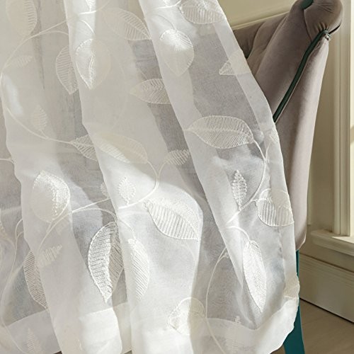 White Sheer Curtains 84 inches Long Leaves 54W x 84L Pack of 2 Vine
