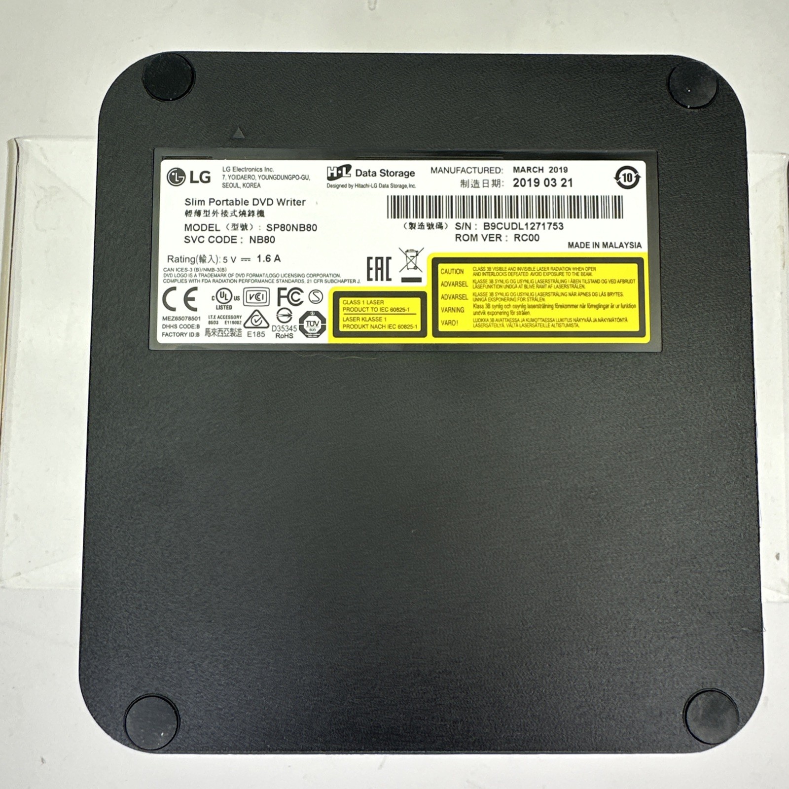 LG Ultra Slim Portable DVD Writer SP80NB80 Compatible With Windows Mac Black