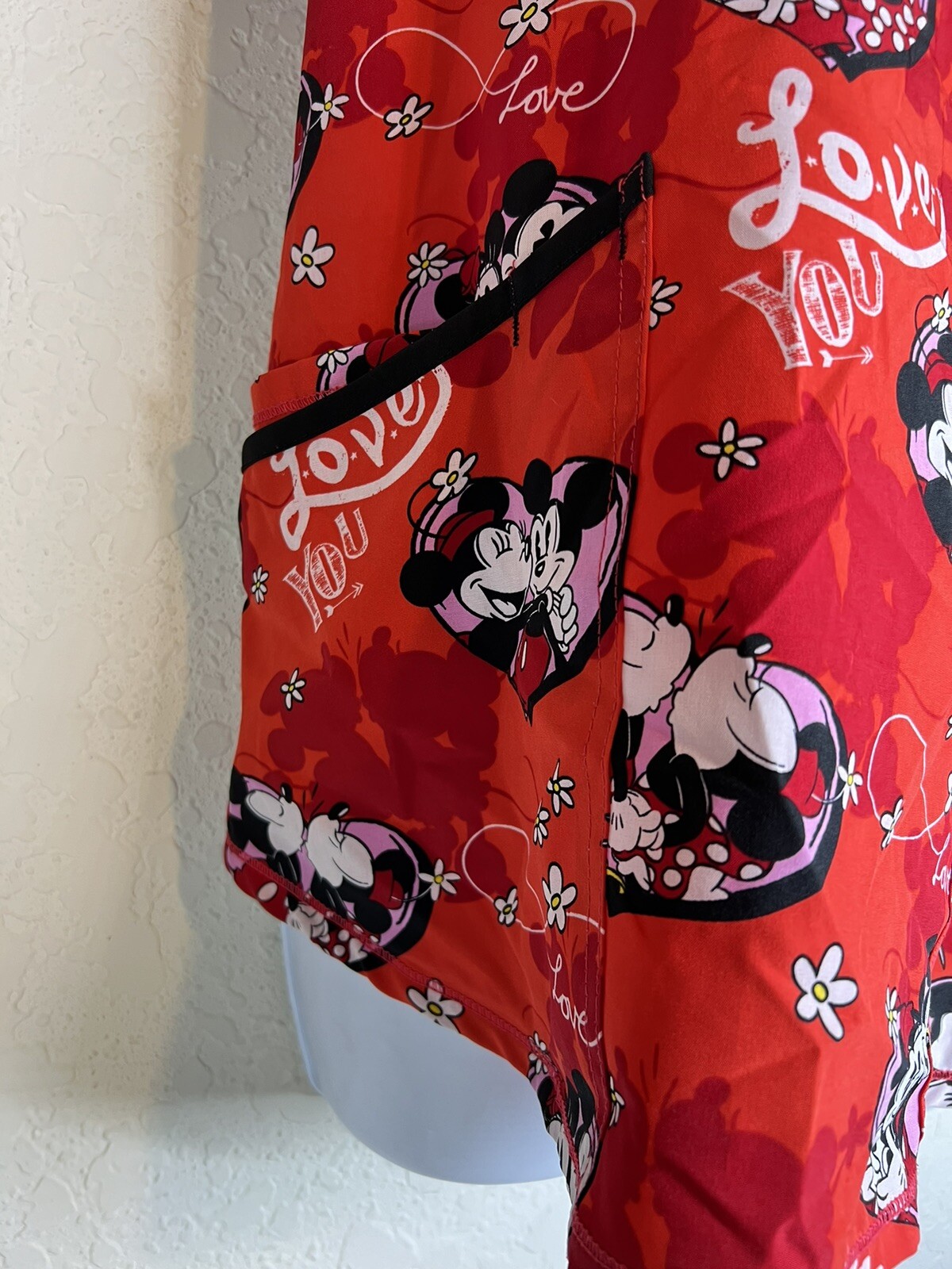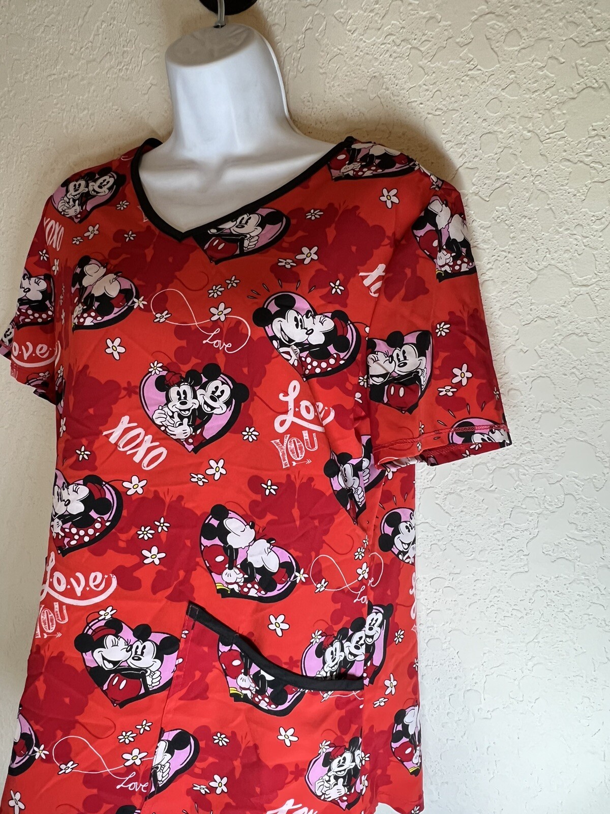 как выглядит Disney Minnie and Mickey Mouse XOXO Red Scrub Top Size S фото