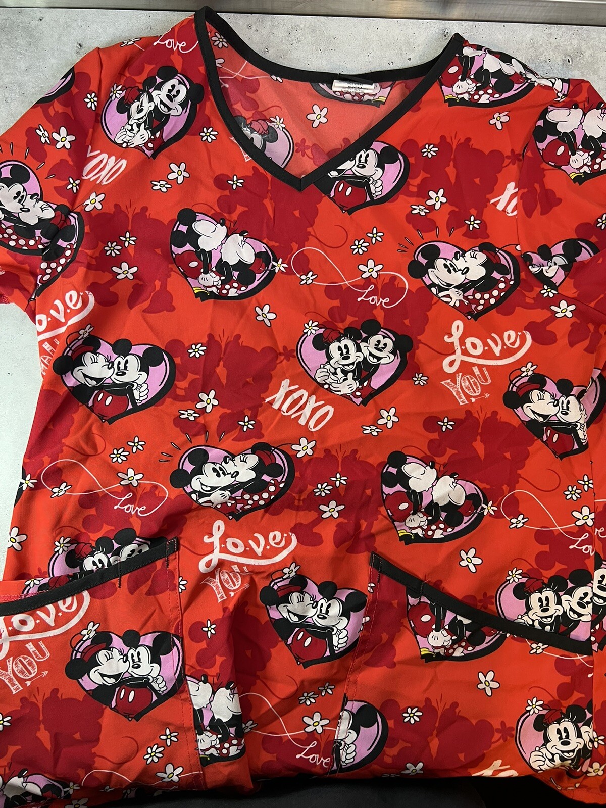 Disney Minnie and Mickey Mouse XOXO Red Scrub Top Size S