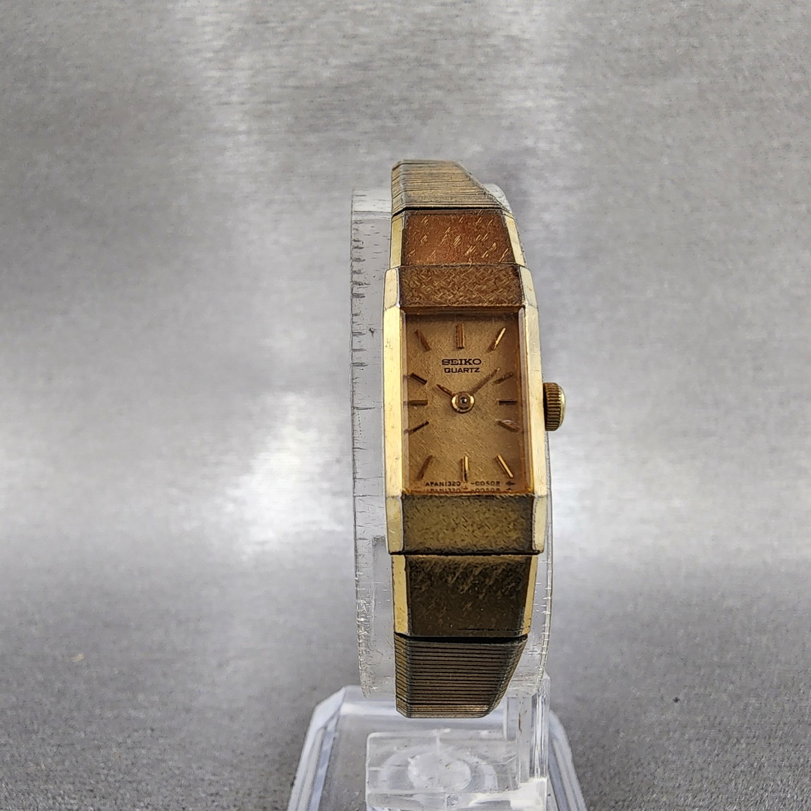 как выглядит VTG Seiko Watch Women 12mm Gold Dial Gold Tone Rectangle 1320-5049 New Battery фото