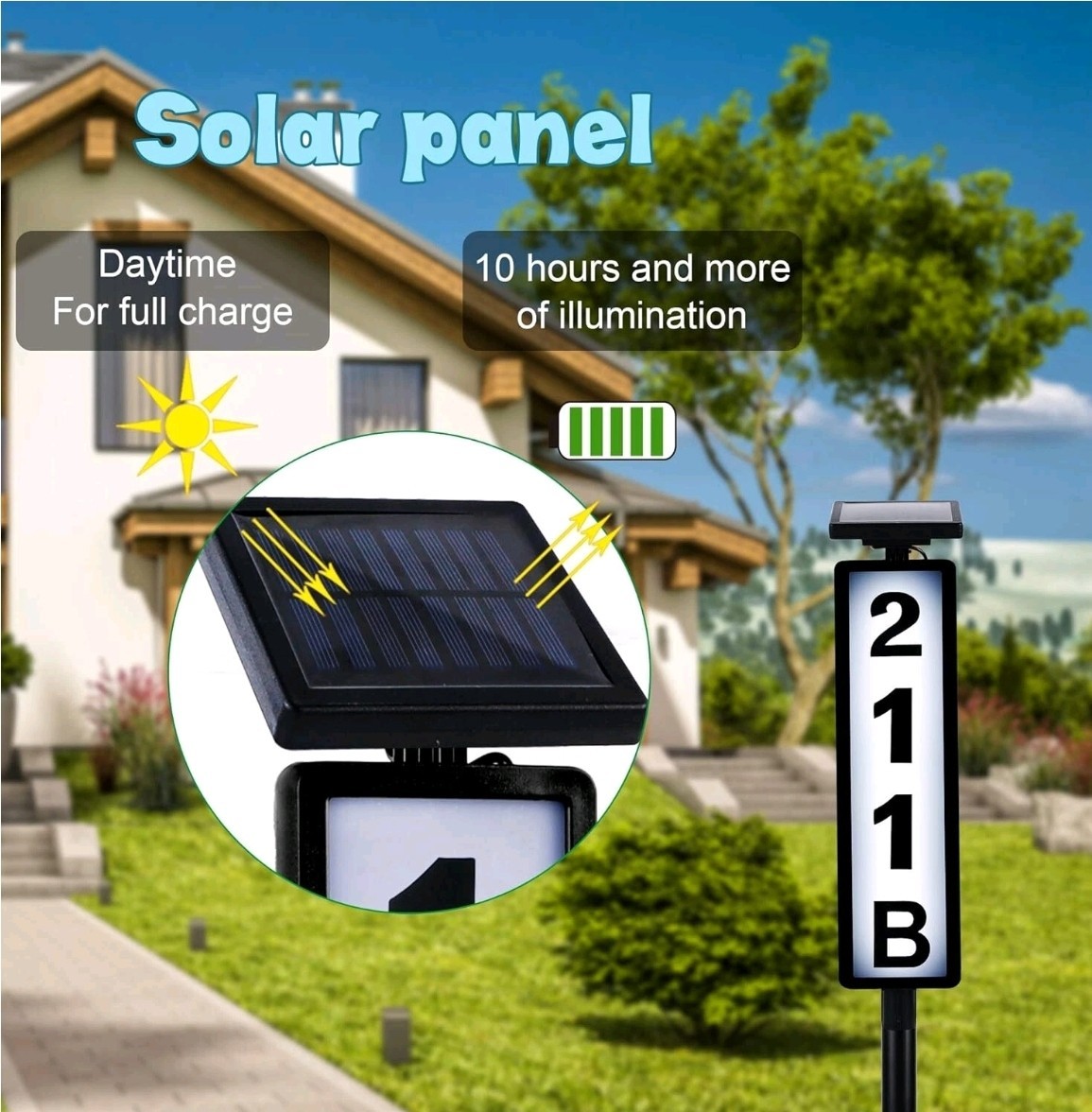 House Numbers Solar Powered LED Address Sign Light On Stick for Best Visibility