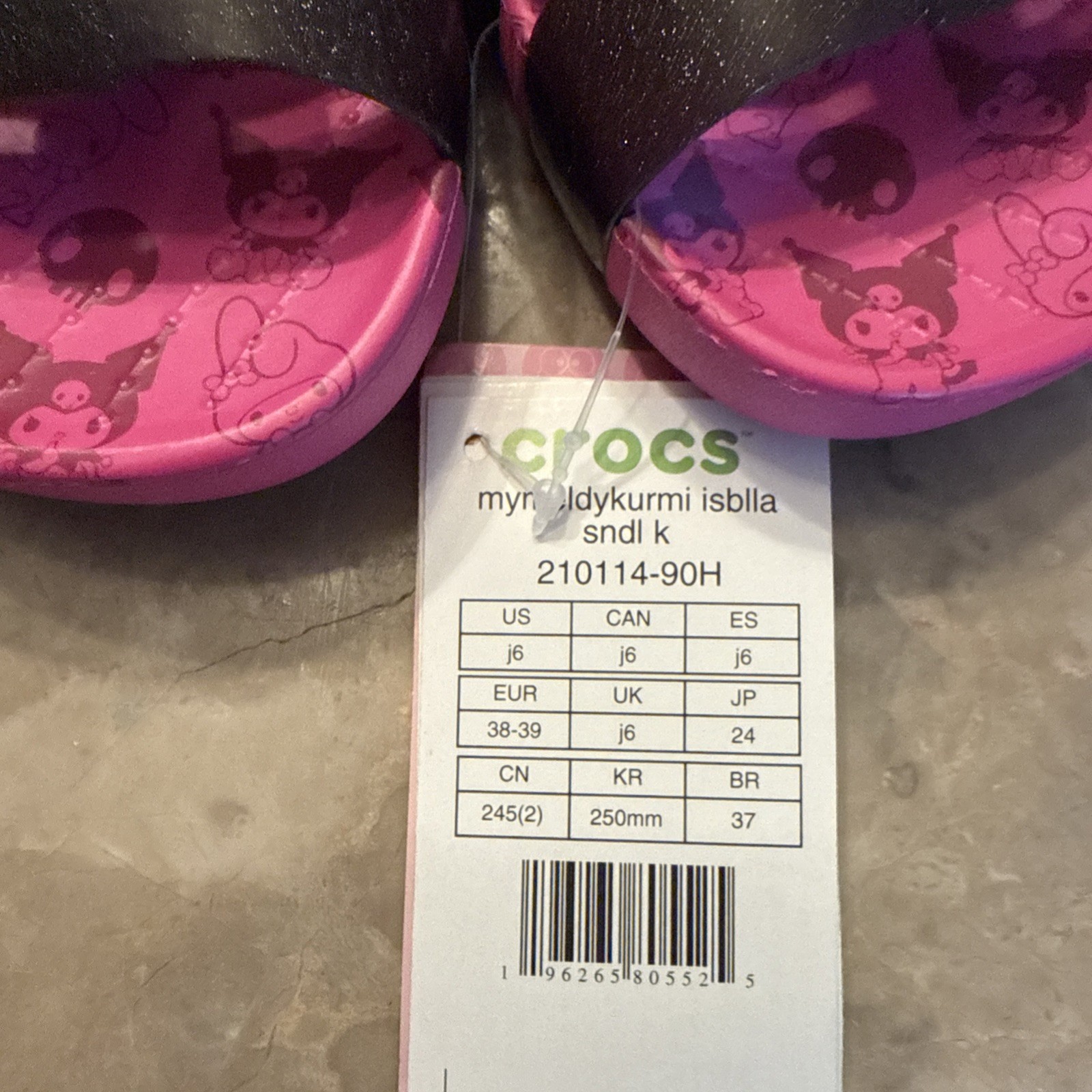 как выглядит Kuromi My Melody Crocs size j6 фото