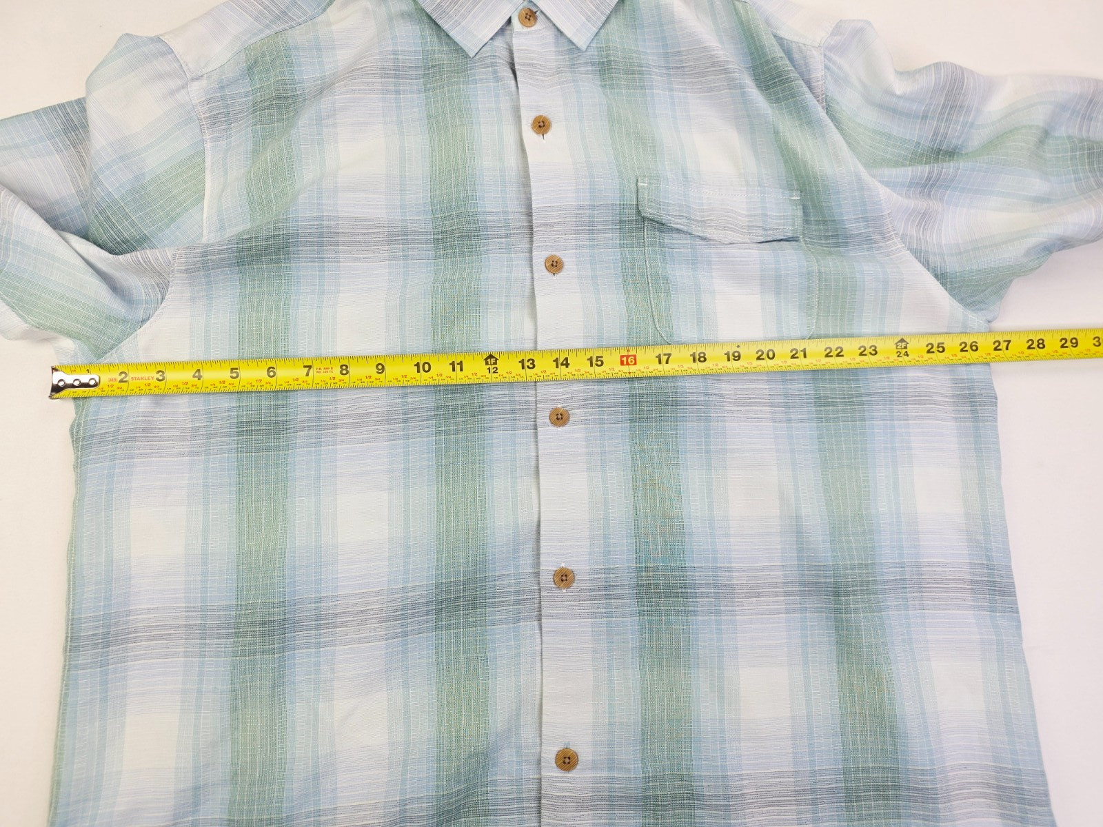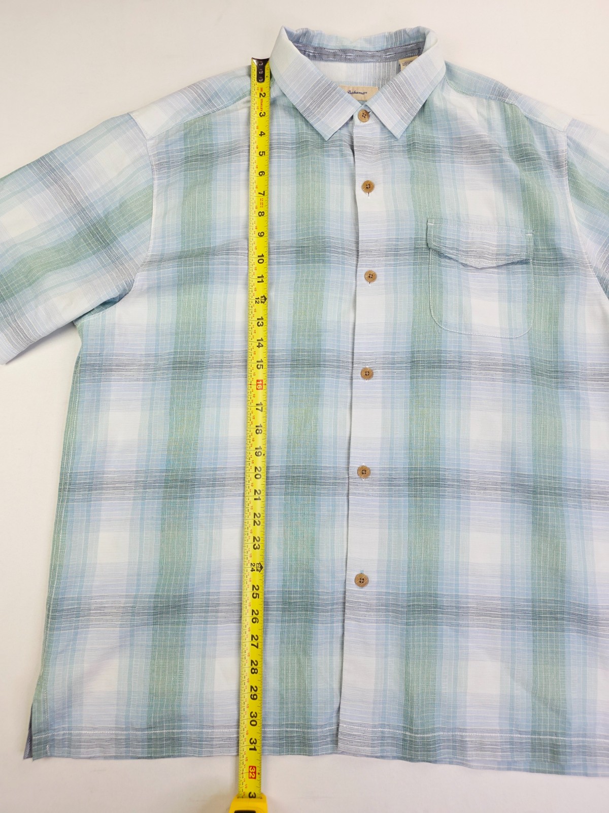 как выглядит Tommy Bahama Original Fit Size XL Men Aqua White Green Check Logo Tag S/S Shirt фото