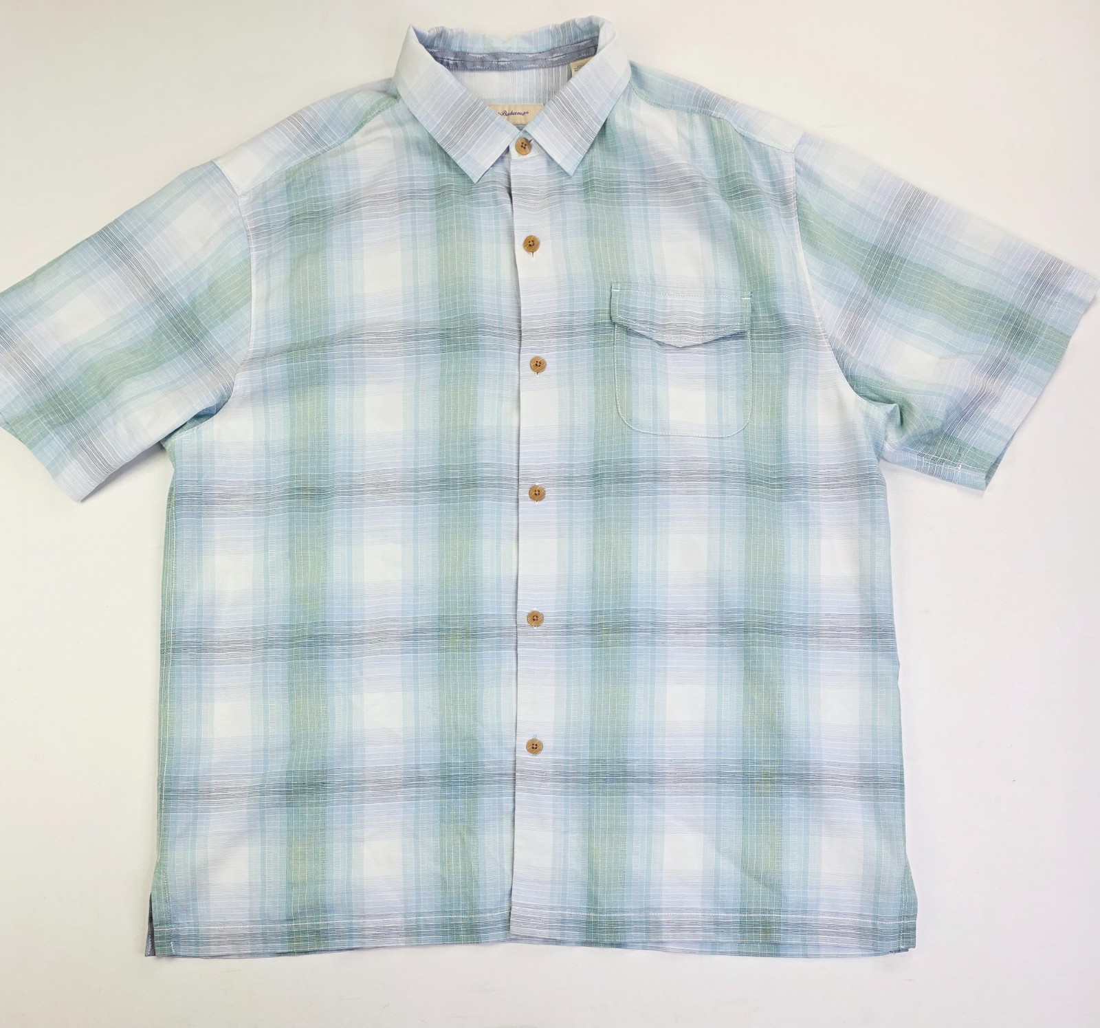 Tommy Bahama Original Fit Size XL Men Aqua White Green Check Logo Tag S/S Shirt