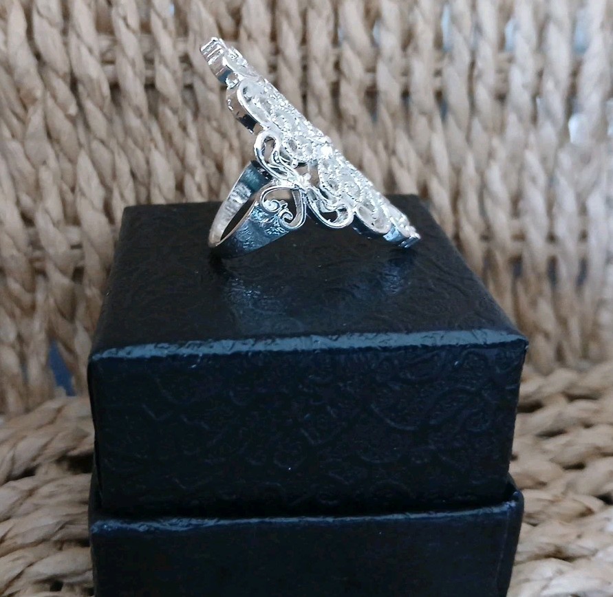 как выглядит 925 Sterling Silver Size 7 Ornate Filagree Long Pointed Ring фото