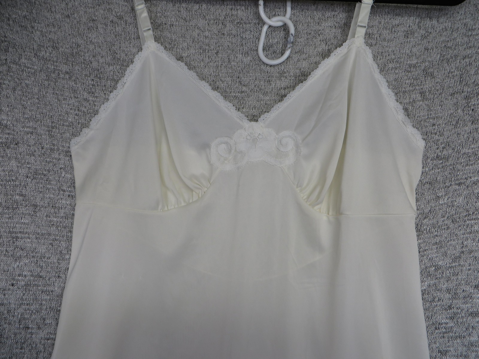 как выглядит Vintage Kayser Slip Womens 36 White Nylon Tricot Lingerie Adjustable Lace 80s фото
