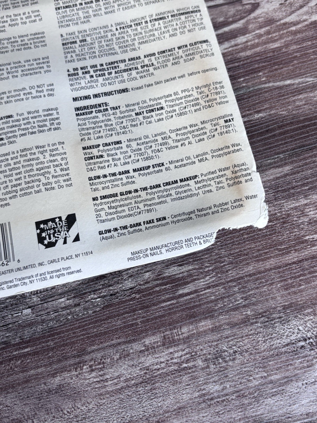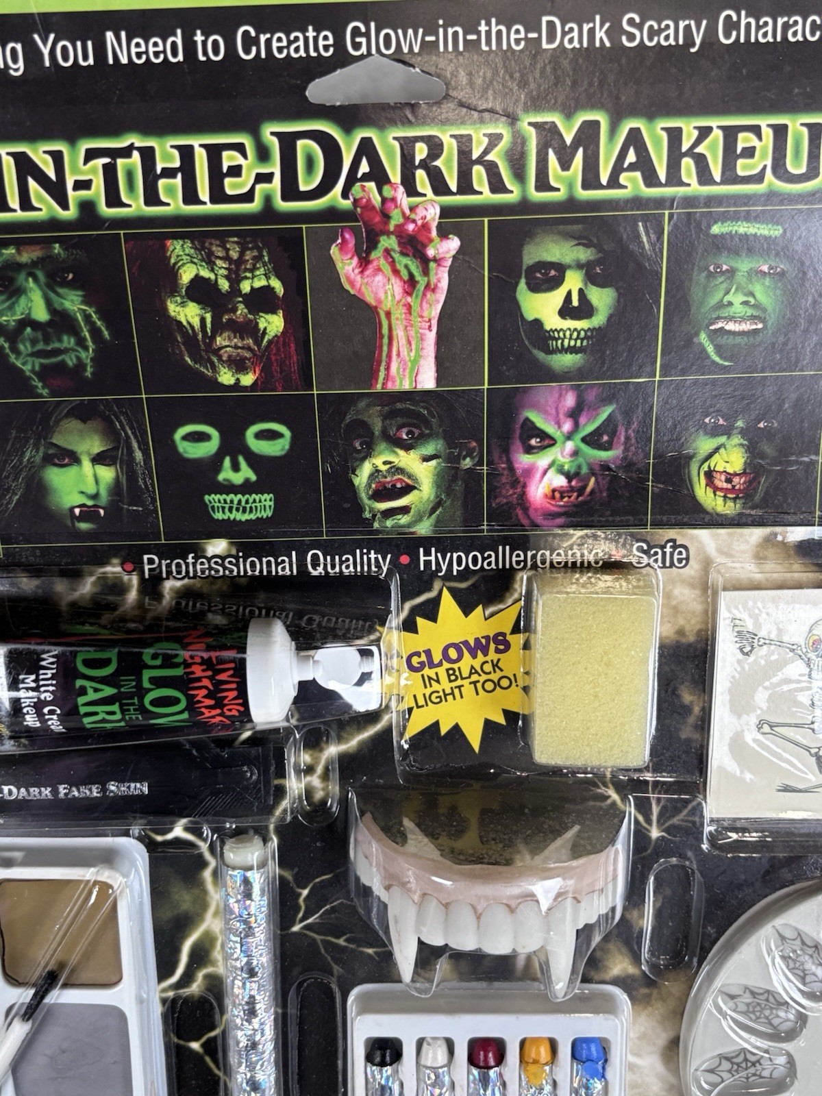 VINTAGE LIVING NIGHTMARE THEATRICAL MAKEUP SET GLOW IN THE DARK CREAM FUN WORLD