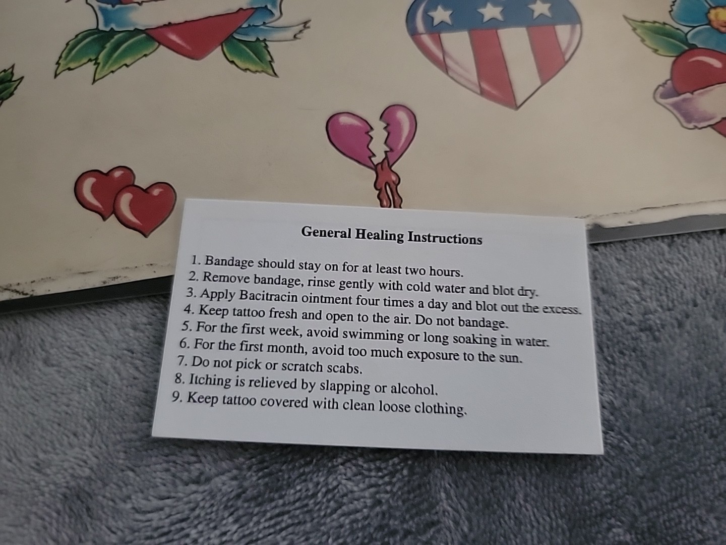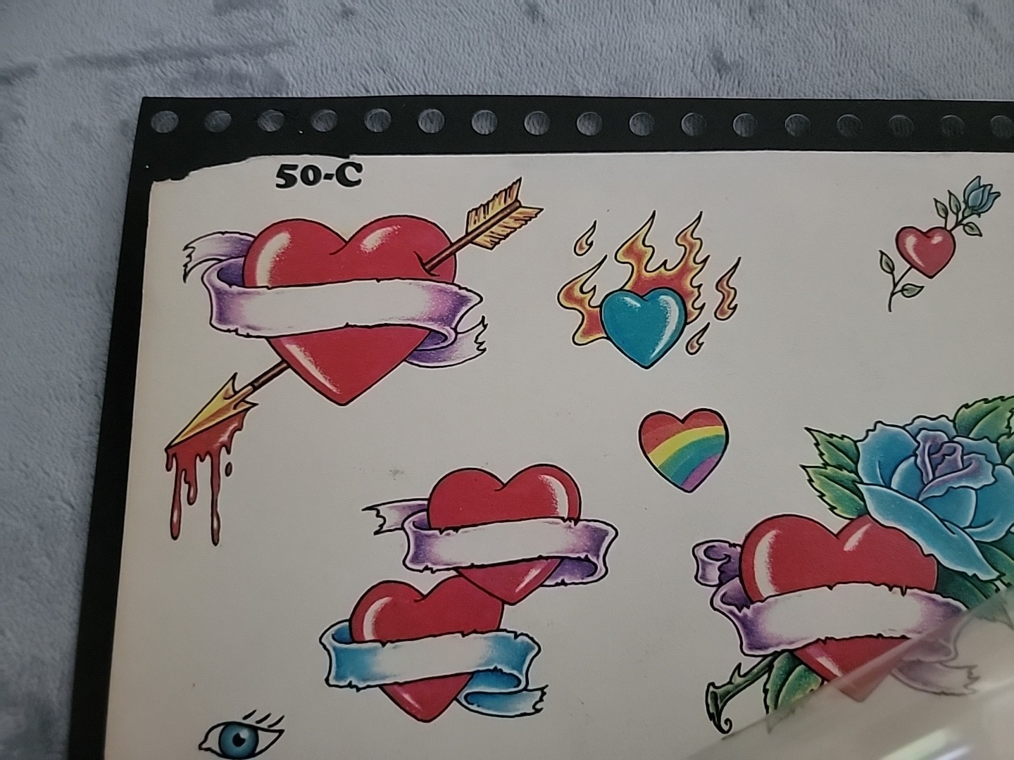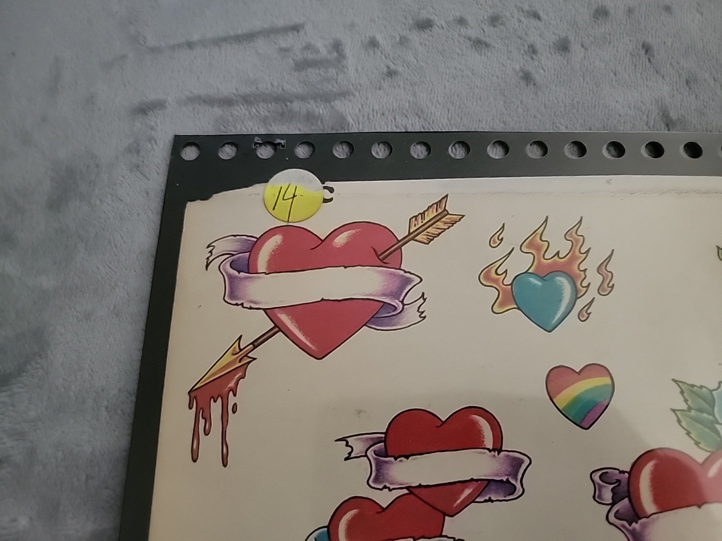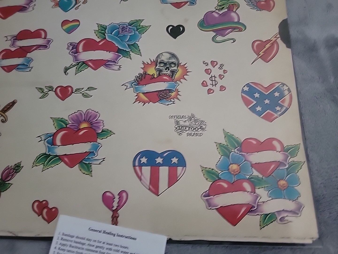 Vintage Official Tattoo Brand Flash Art 11x14 Tattoo Blue Macomb IL HEARTS