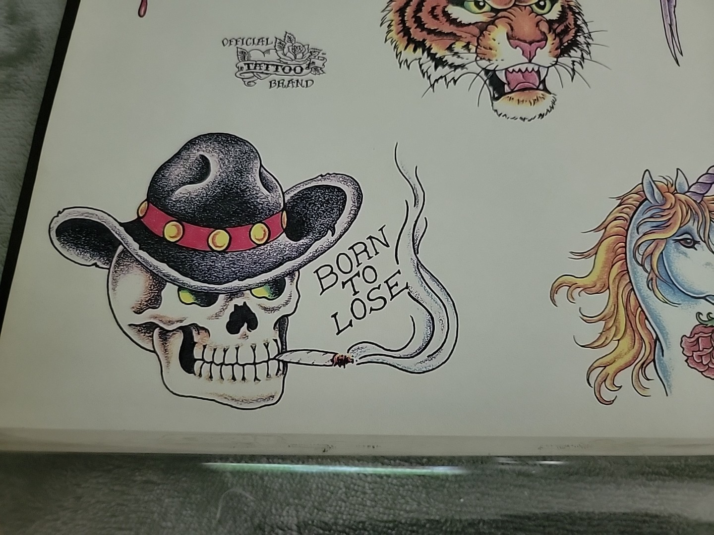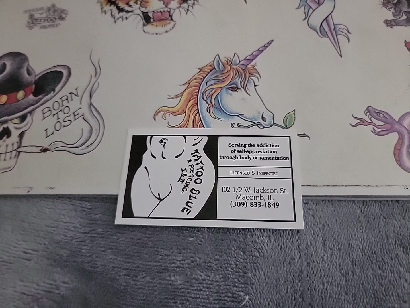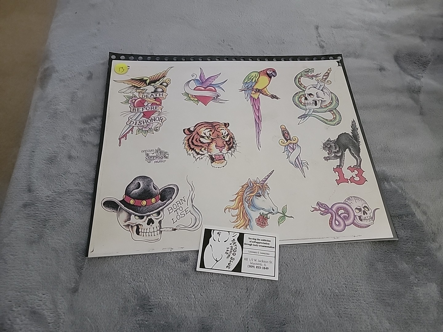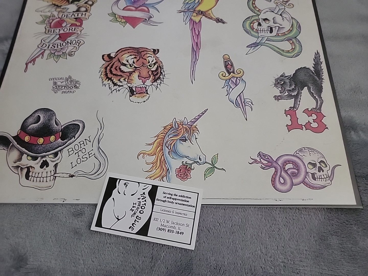 Vintage Official Tattoo Brand Flash Art 11x14 Tattoo Blue Macomb IL SKULLS