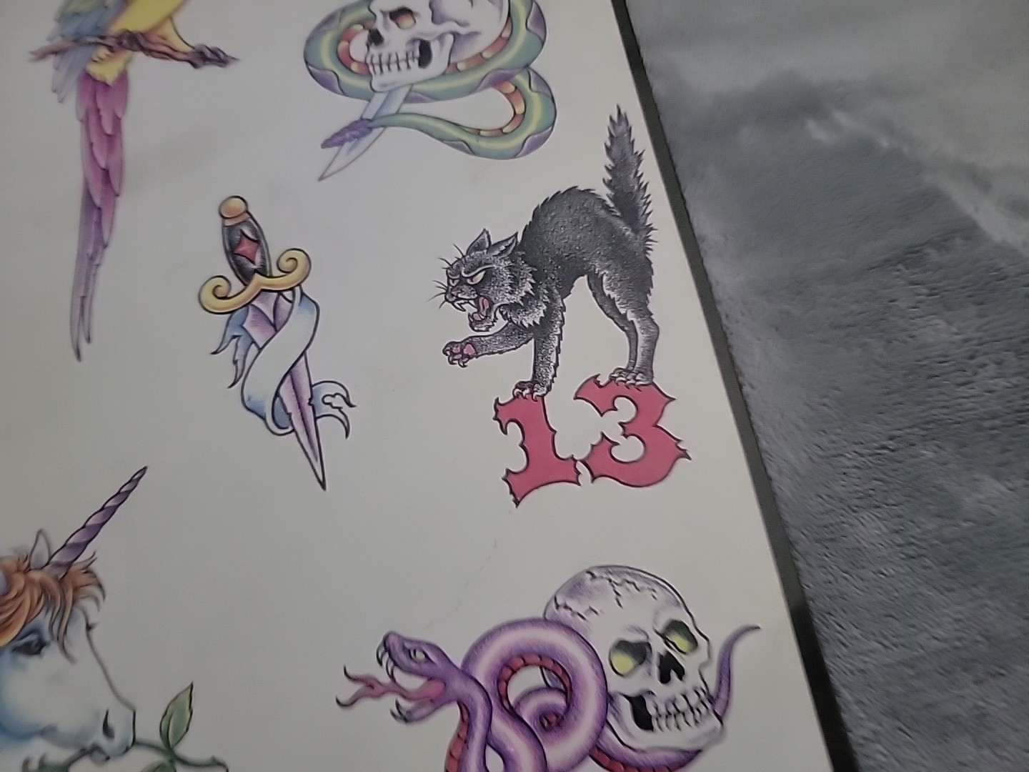 как выглядит Vintage Official Tattoo Brand Flash Art 11"x14" Tattoo Blue Macomb IL SKULLS фото