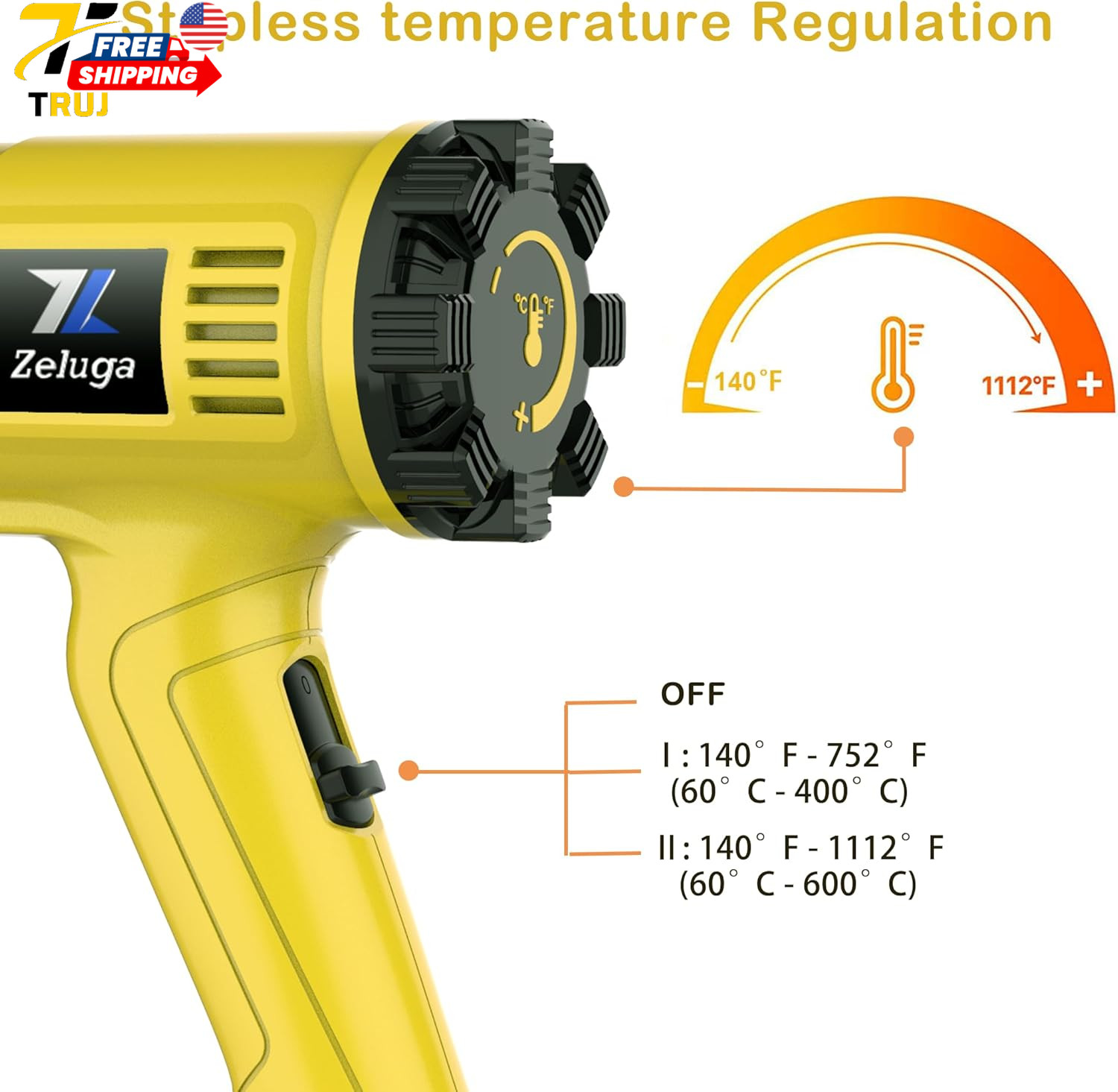 1800W Heat Gun Hot Air Variable Temperature Control 4 Nozzles Tool 140 1112