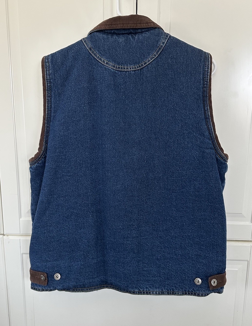 как выглядит Vintage Wrangler Vest Blue Denim Sherpa Lined Full Zip Corduroy Accent Pocket M фото