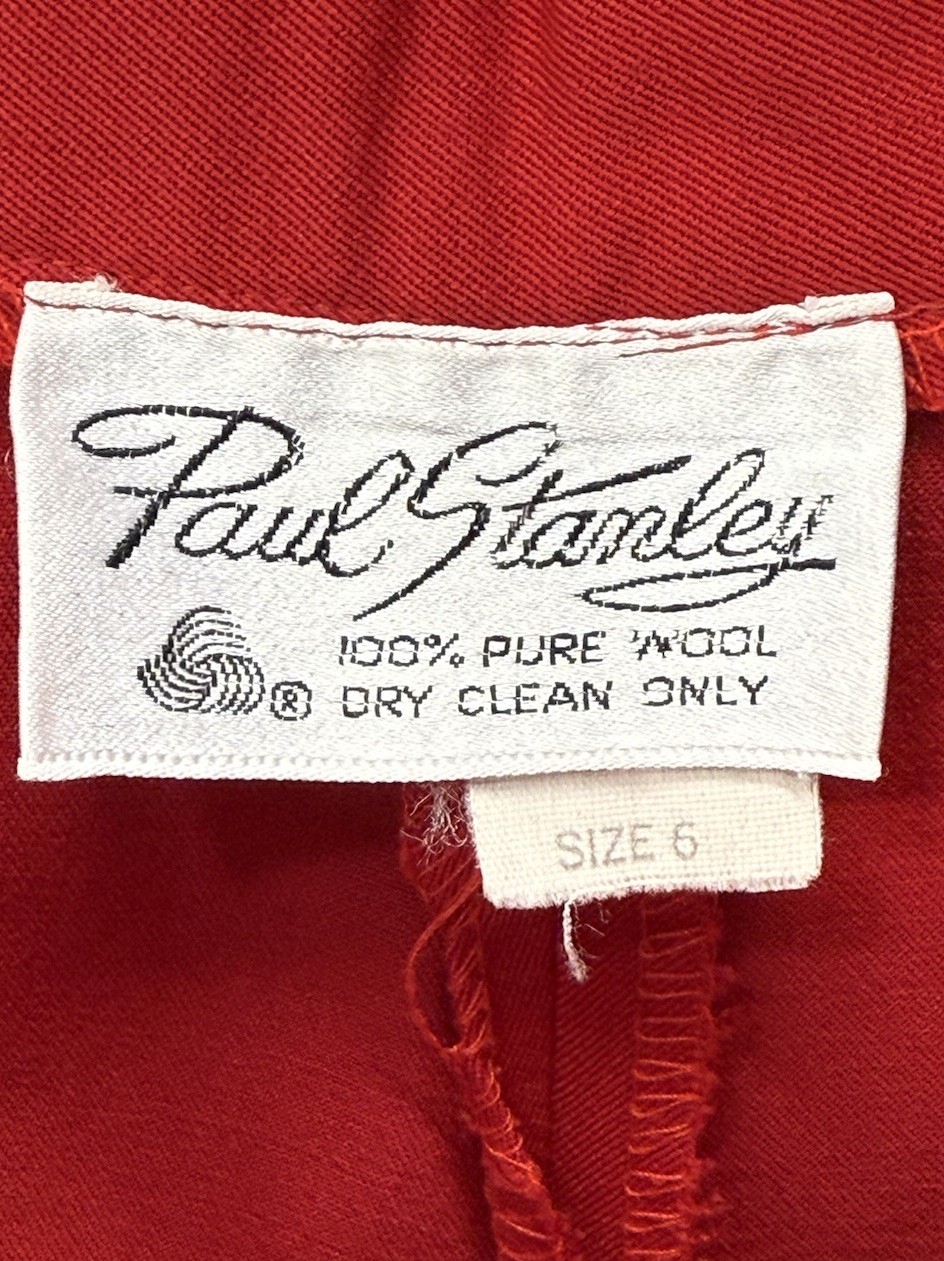 Vintage Paul Stanley Women s Sz 6 Red 100 Pure Wool Pleated Front Dress Pants