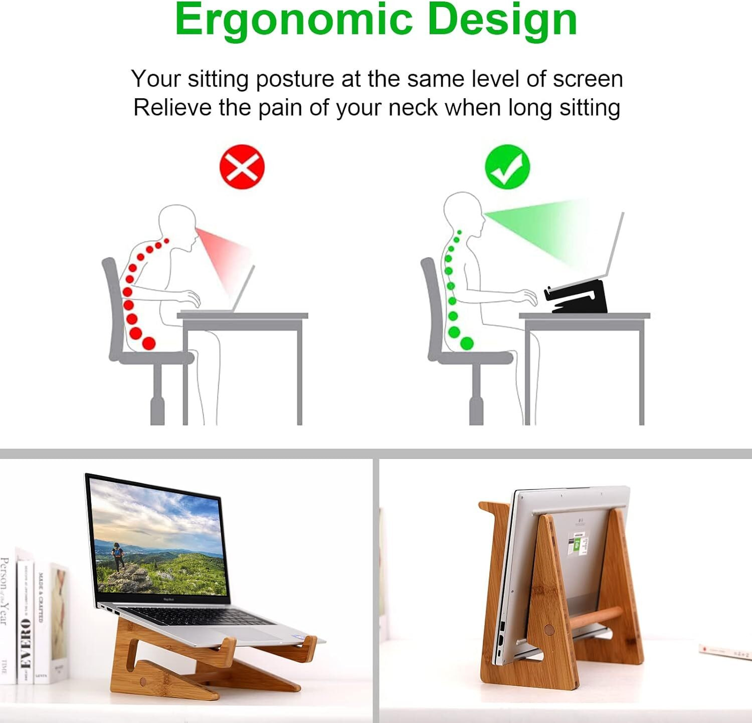 Laptop Stand Wooden Vertical Laptop Stand for Desk Bamboo Laptop Stand Comp